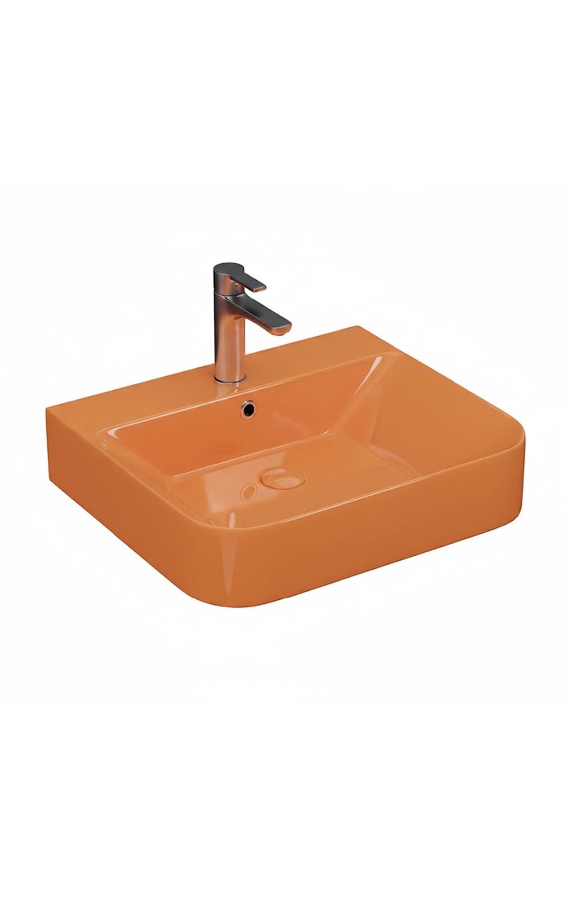 Allecra 55 cm Tezgah Üstü Kare Lavabo Turuncu