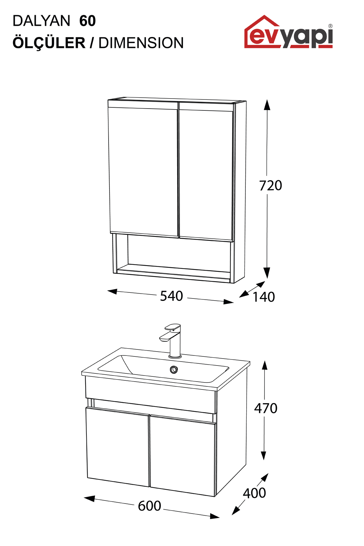 Biani Dalyan 60 cm Banyo Dolabı Renk Latte