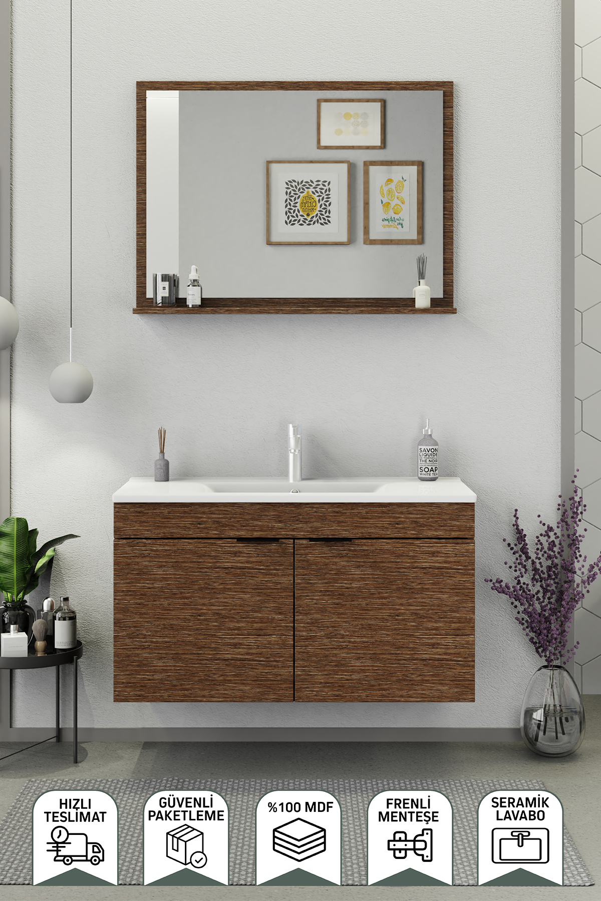 Biani Fix Arya 100 cm Banyo Dolabı Renk Aybe Kahve