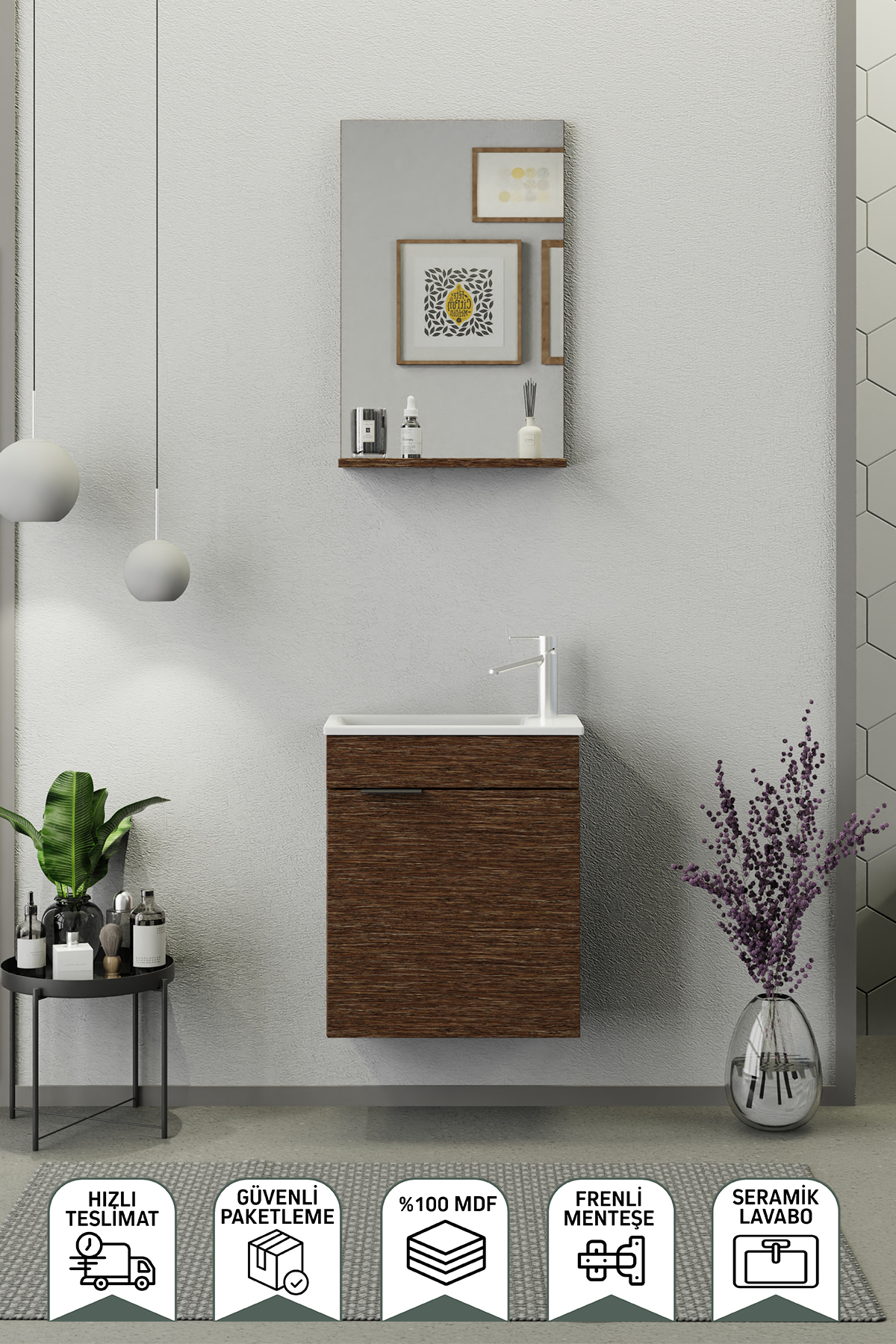 Biani Fix Arya 50 cm Banyo Dolabı Renk Aybe Kahve