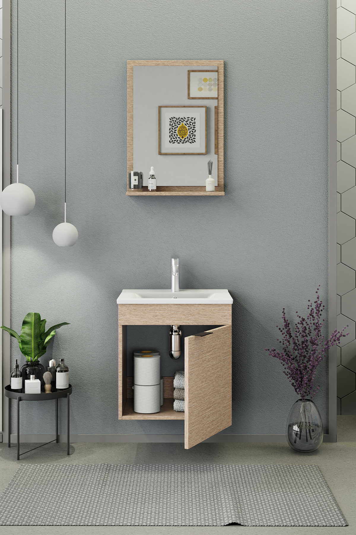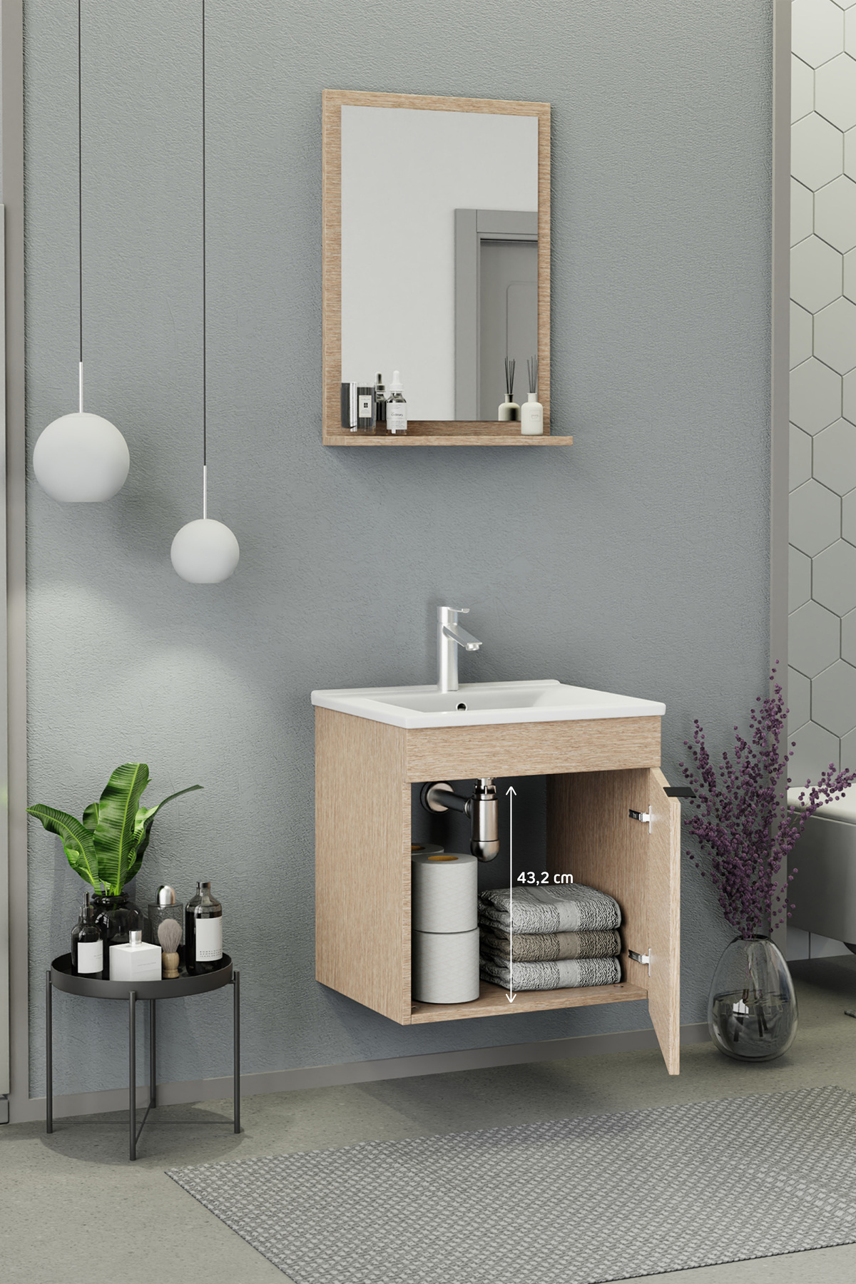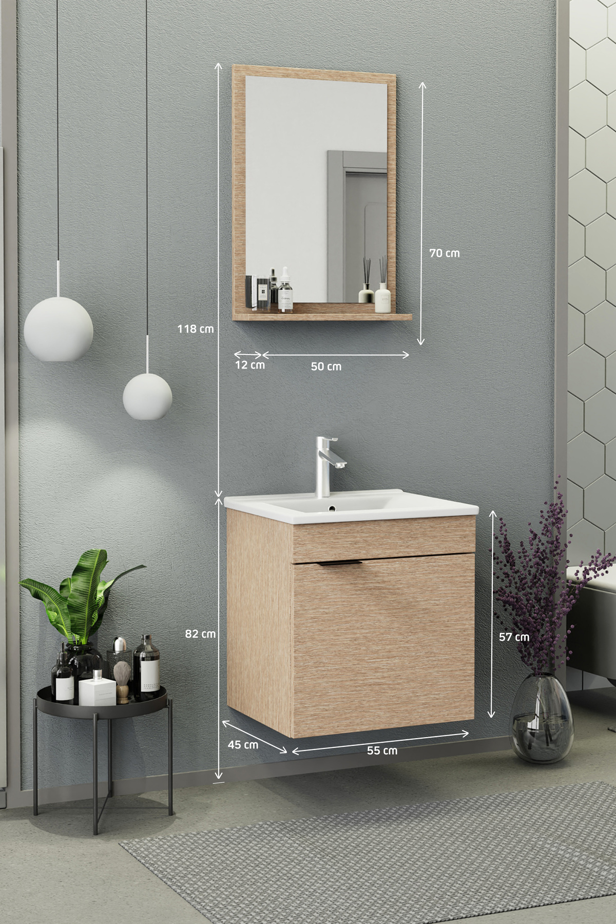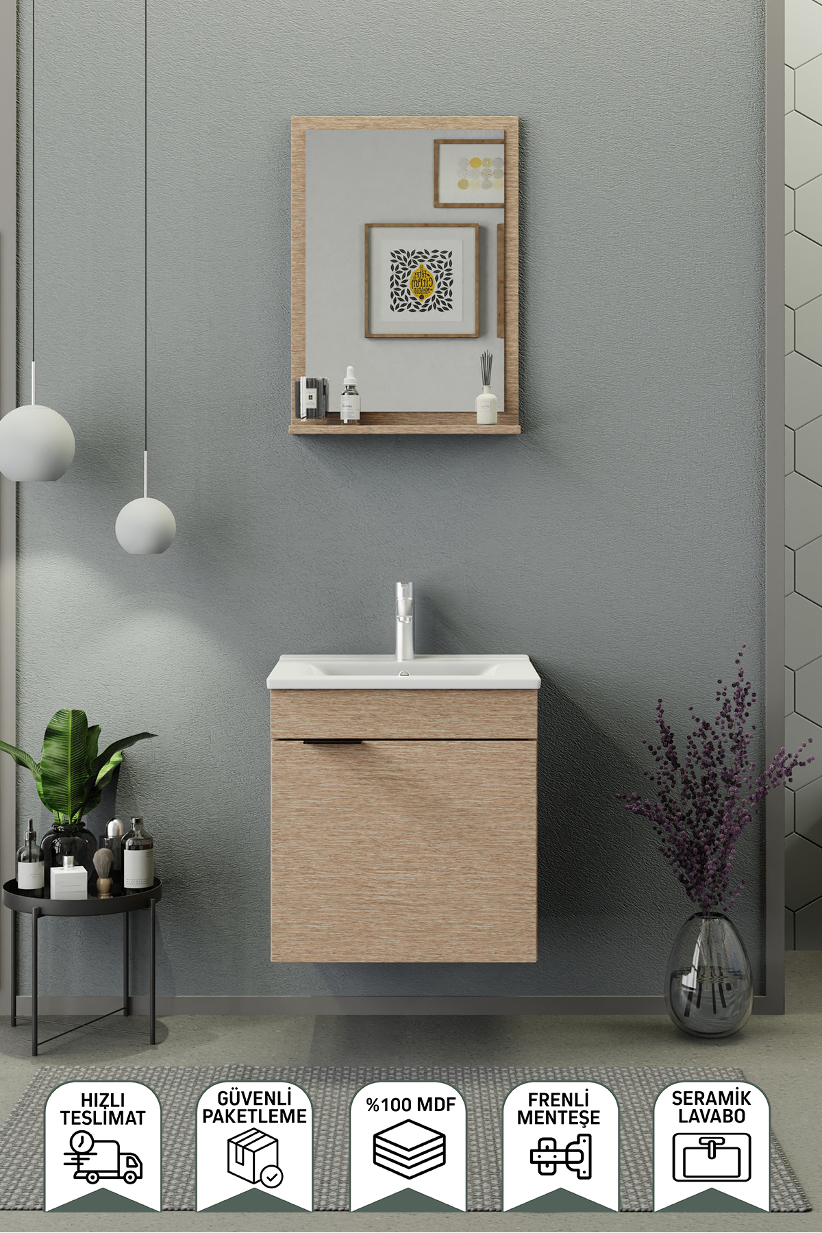 Biani Fix Arya 55 cm Banyo Dolabı Renk Aybe Bej