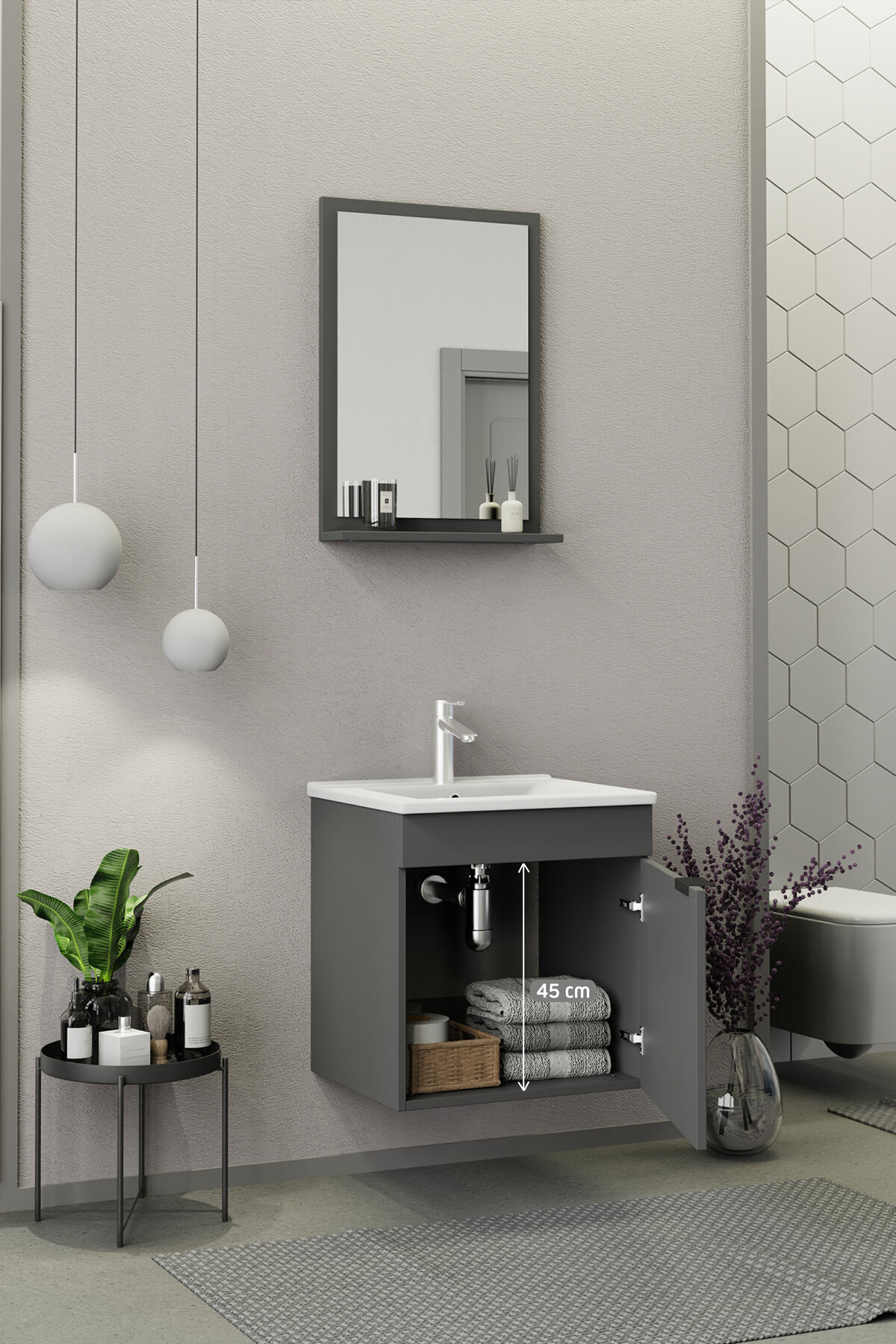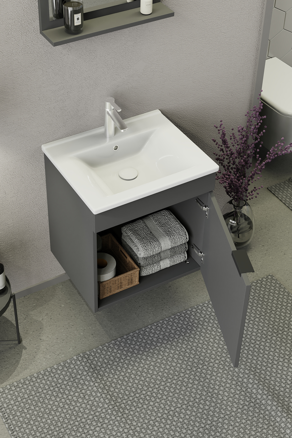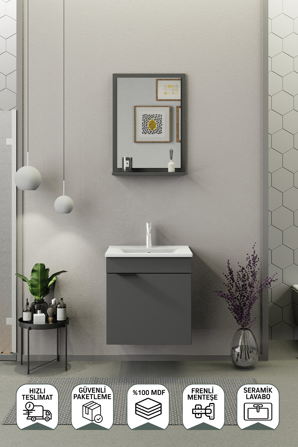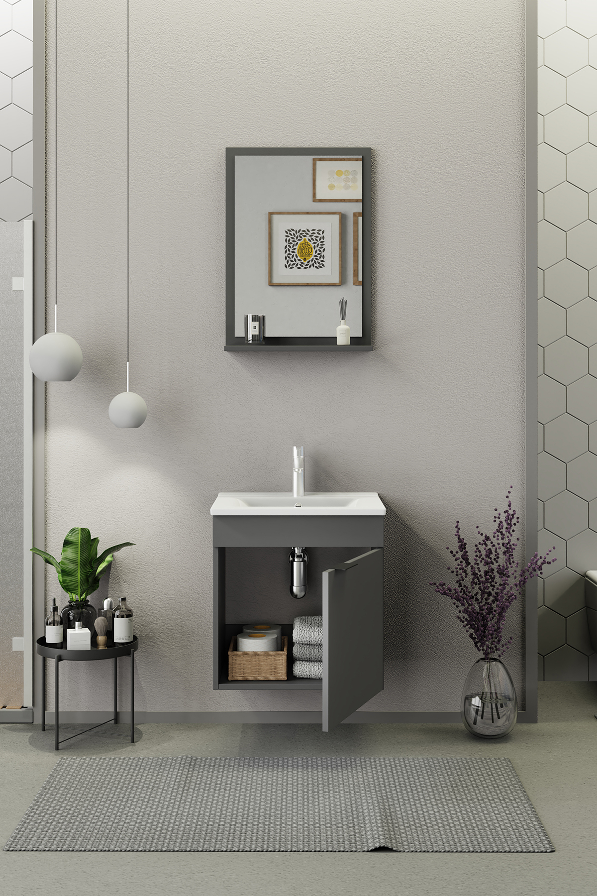 Biani Fix Arya 55 cm Mat Gri Banyo Dolabı