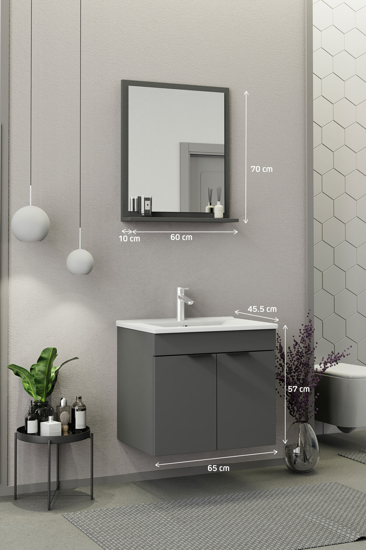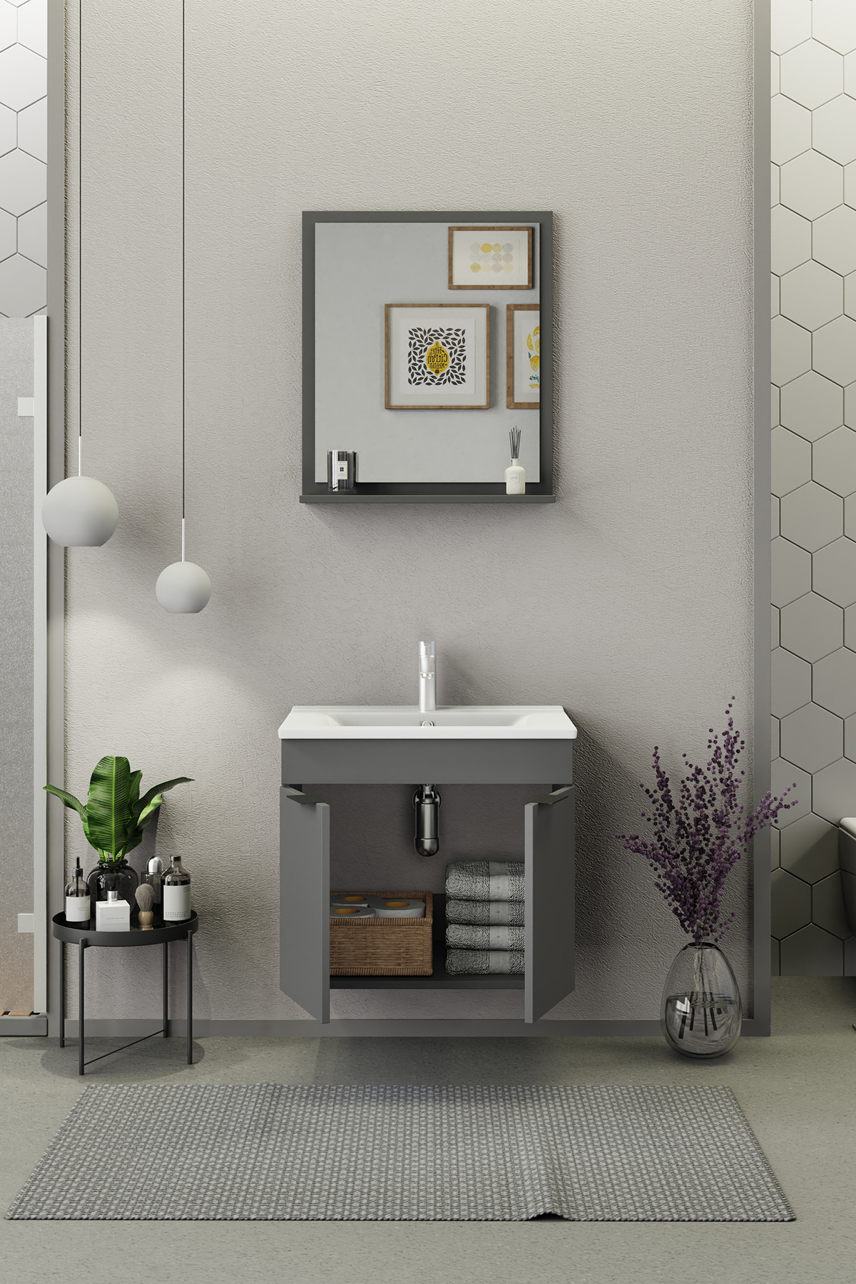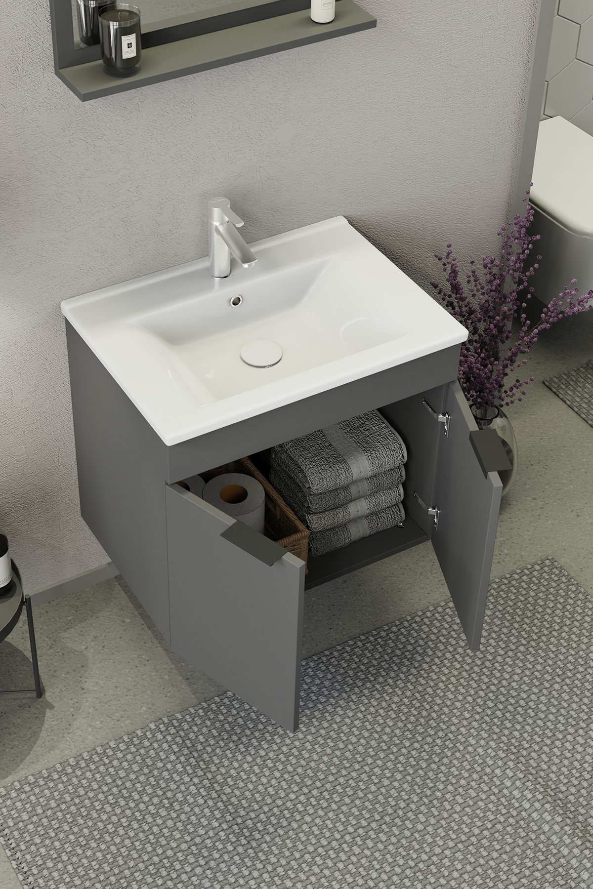 Biani Fix Arya 65 cm Mat Gri Banyo Dolabı