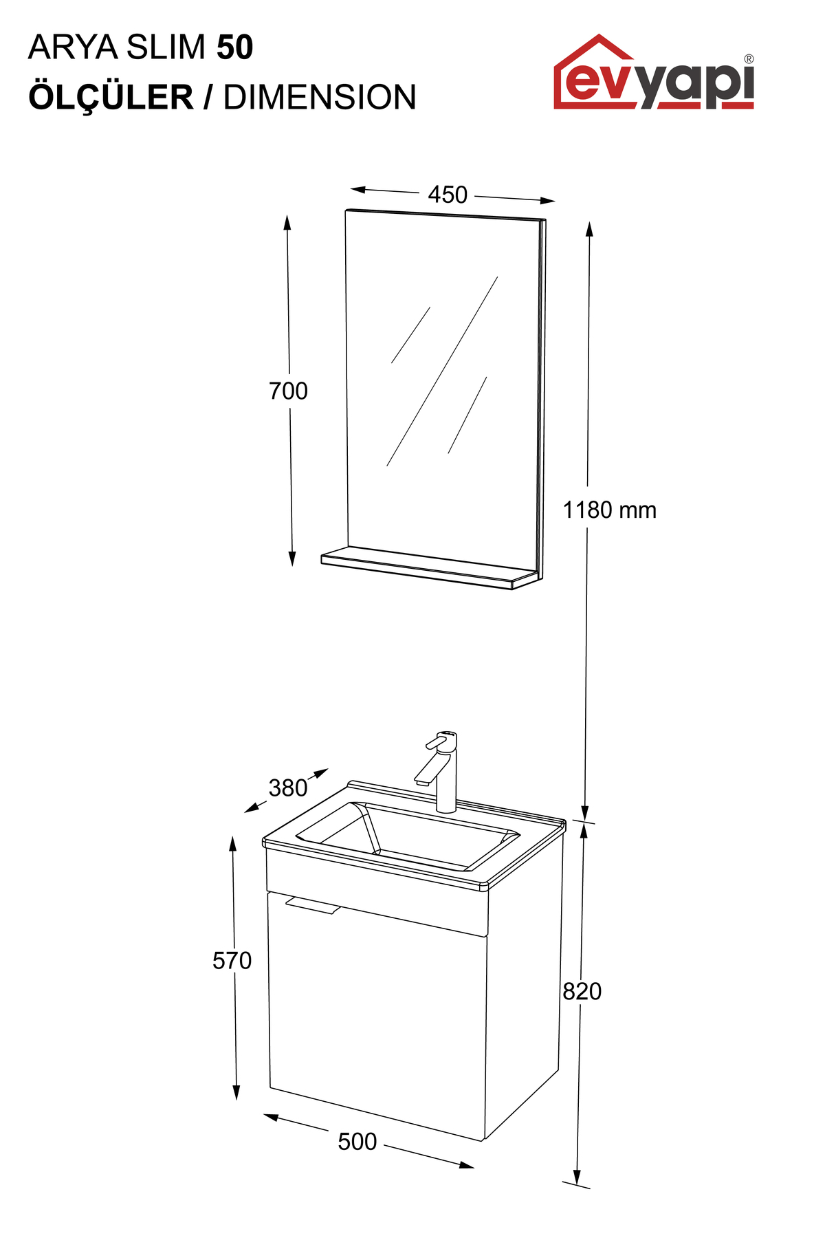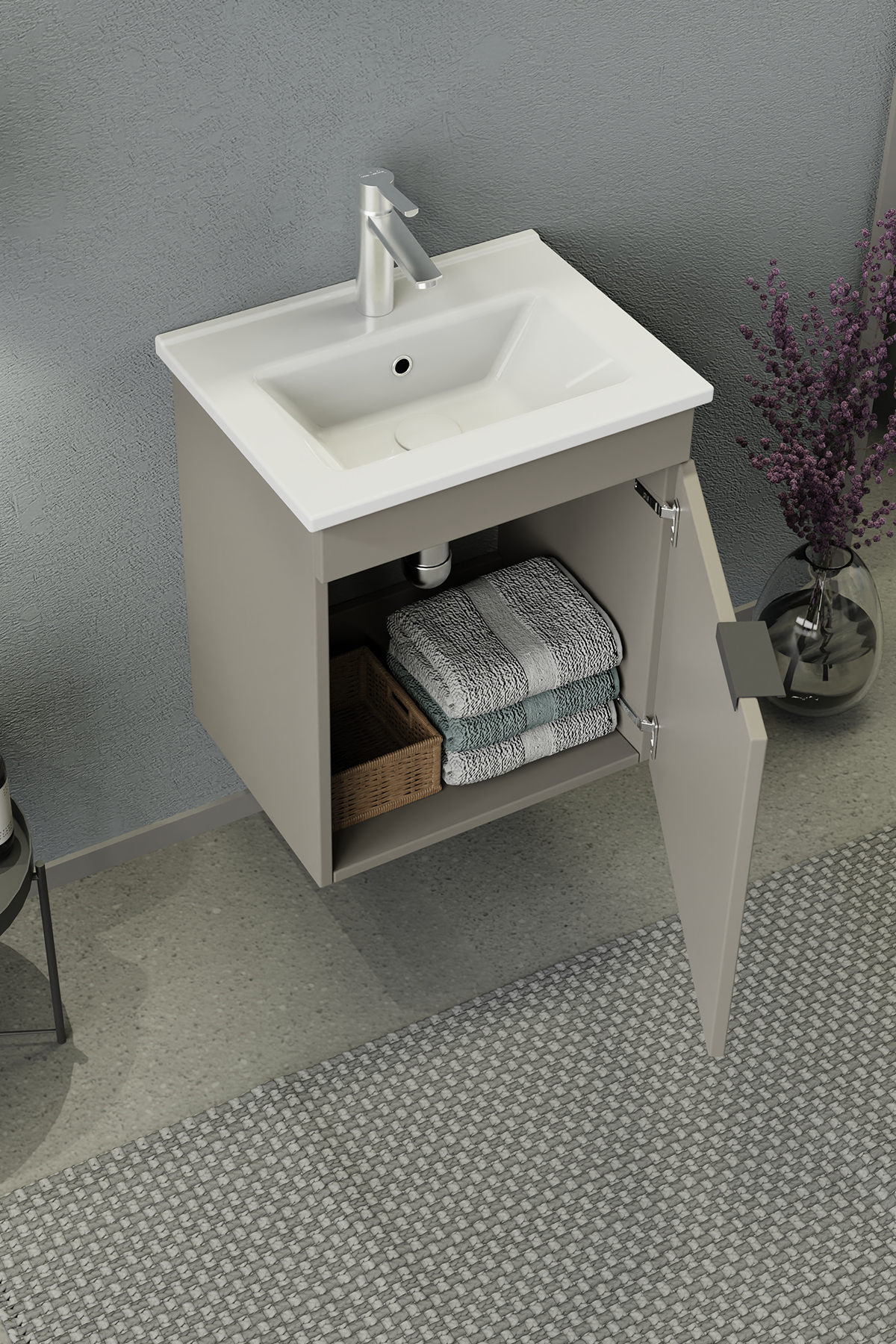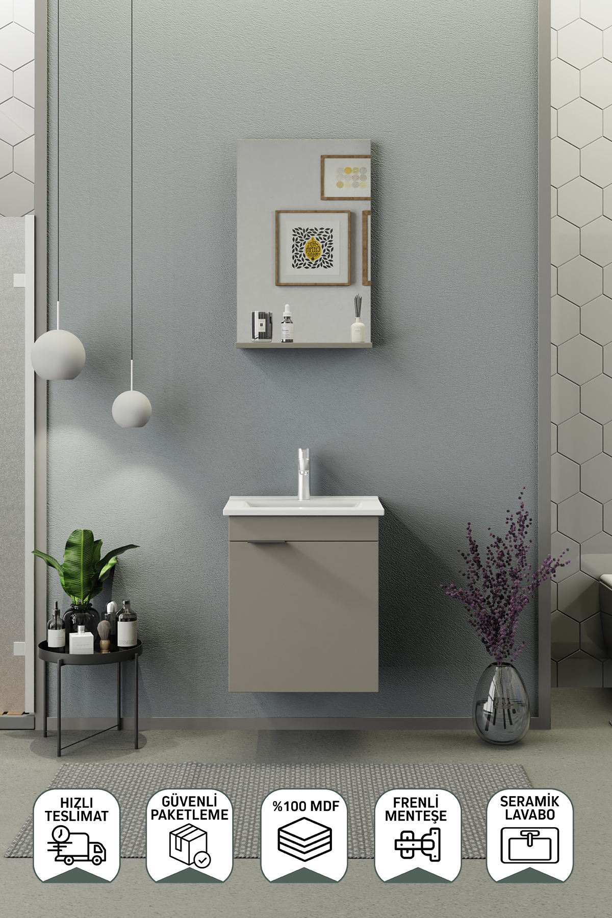 Biani Fix Arya Slım 50 cm Banyo Dolabı Latte