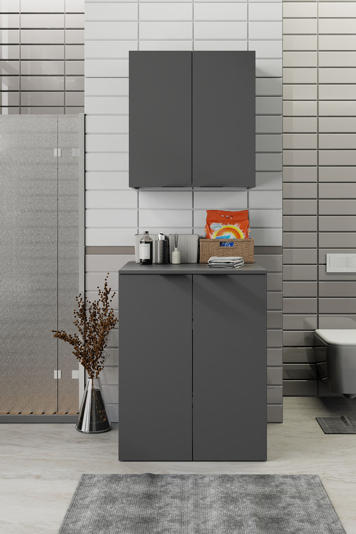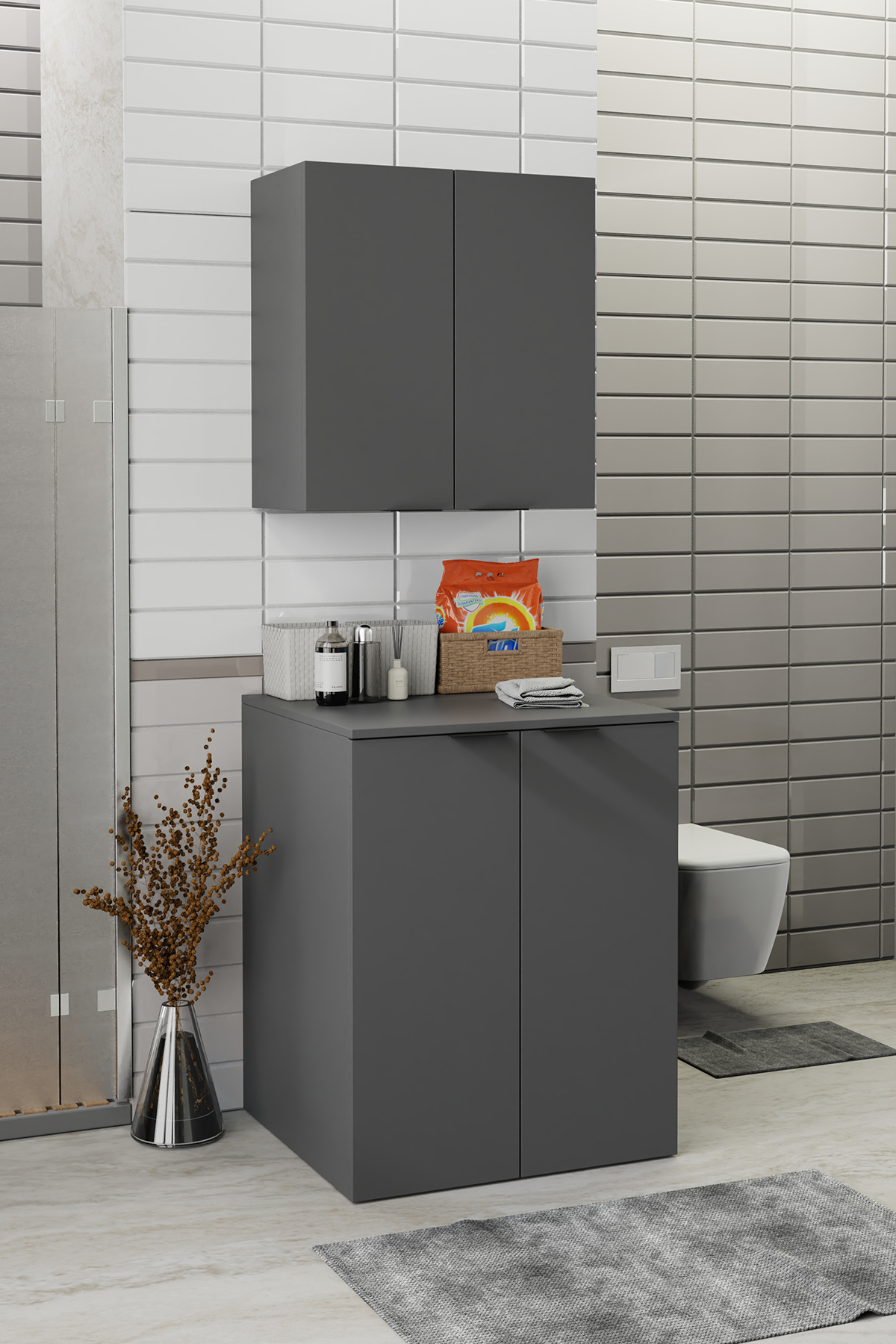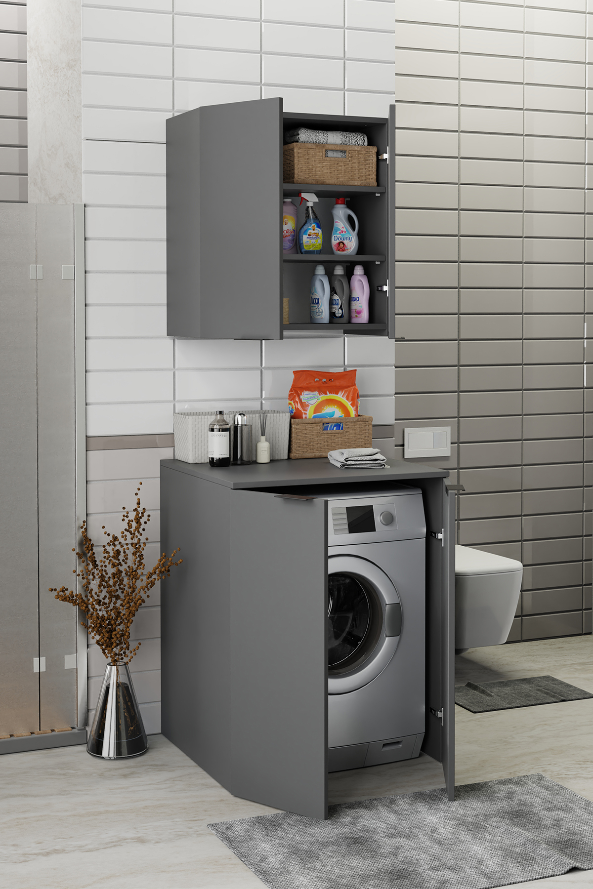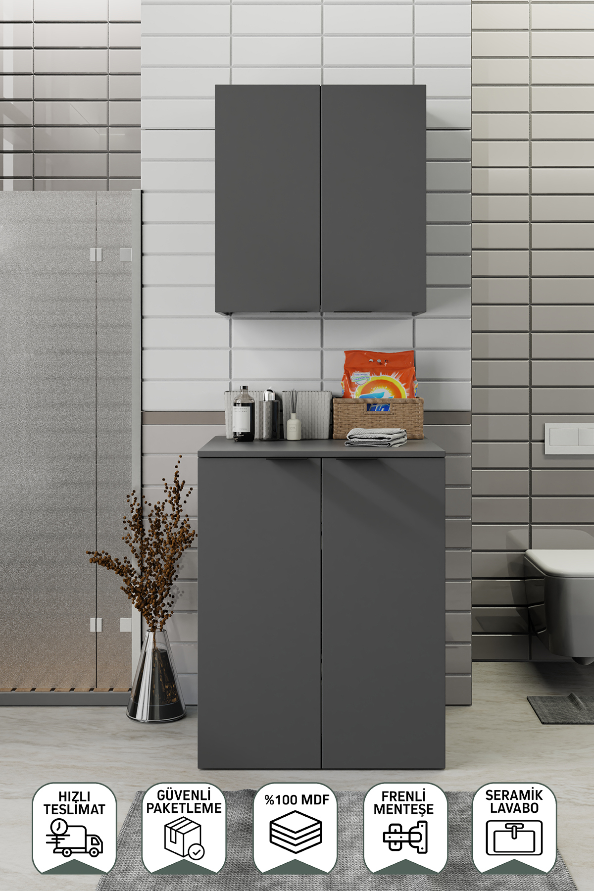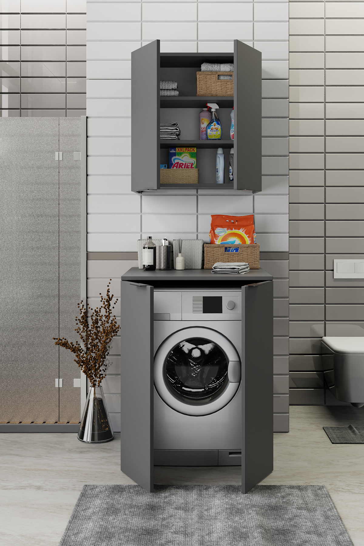 Biani Fix Arya ve Loft Uyumlu Çamaşır Makinesi Dolabı Renk Mat Gri