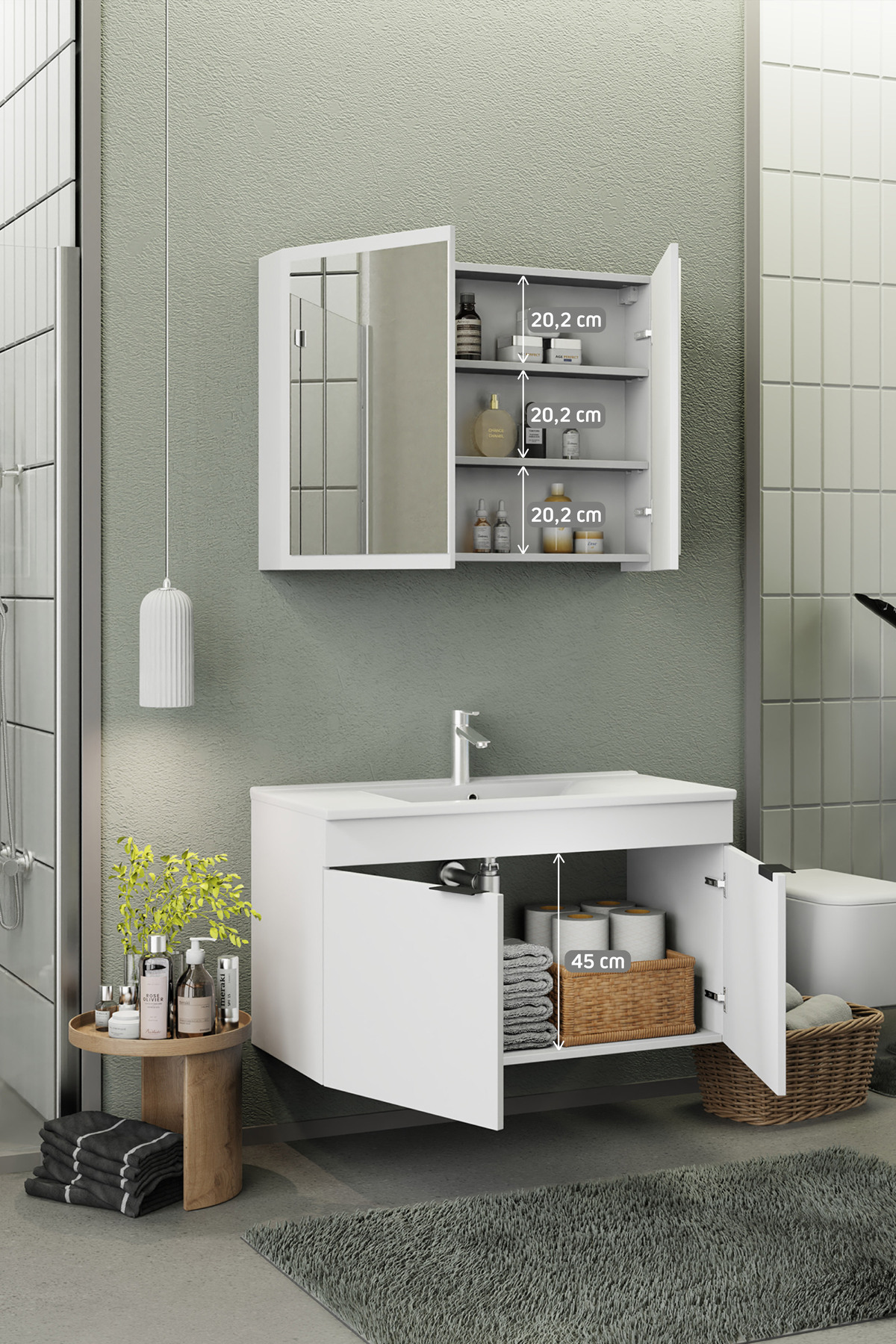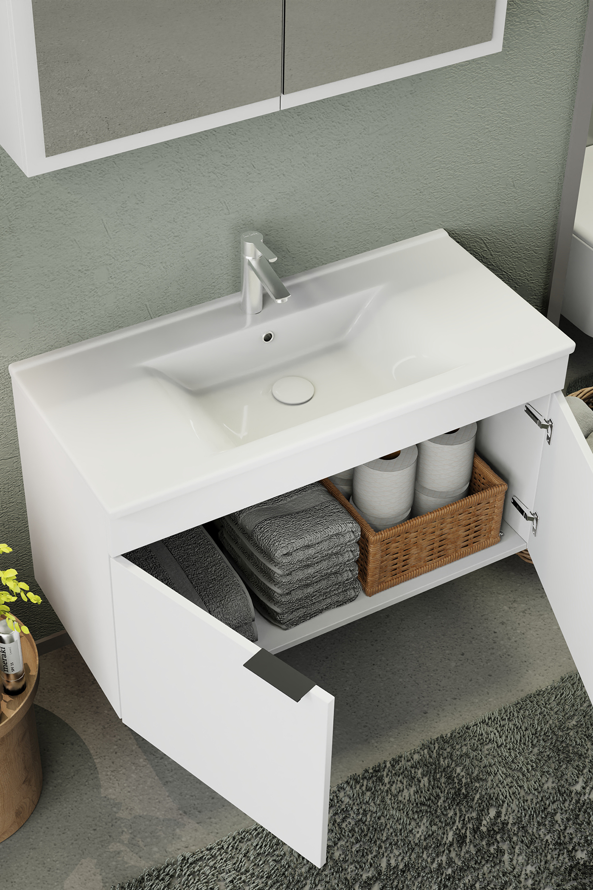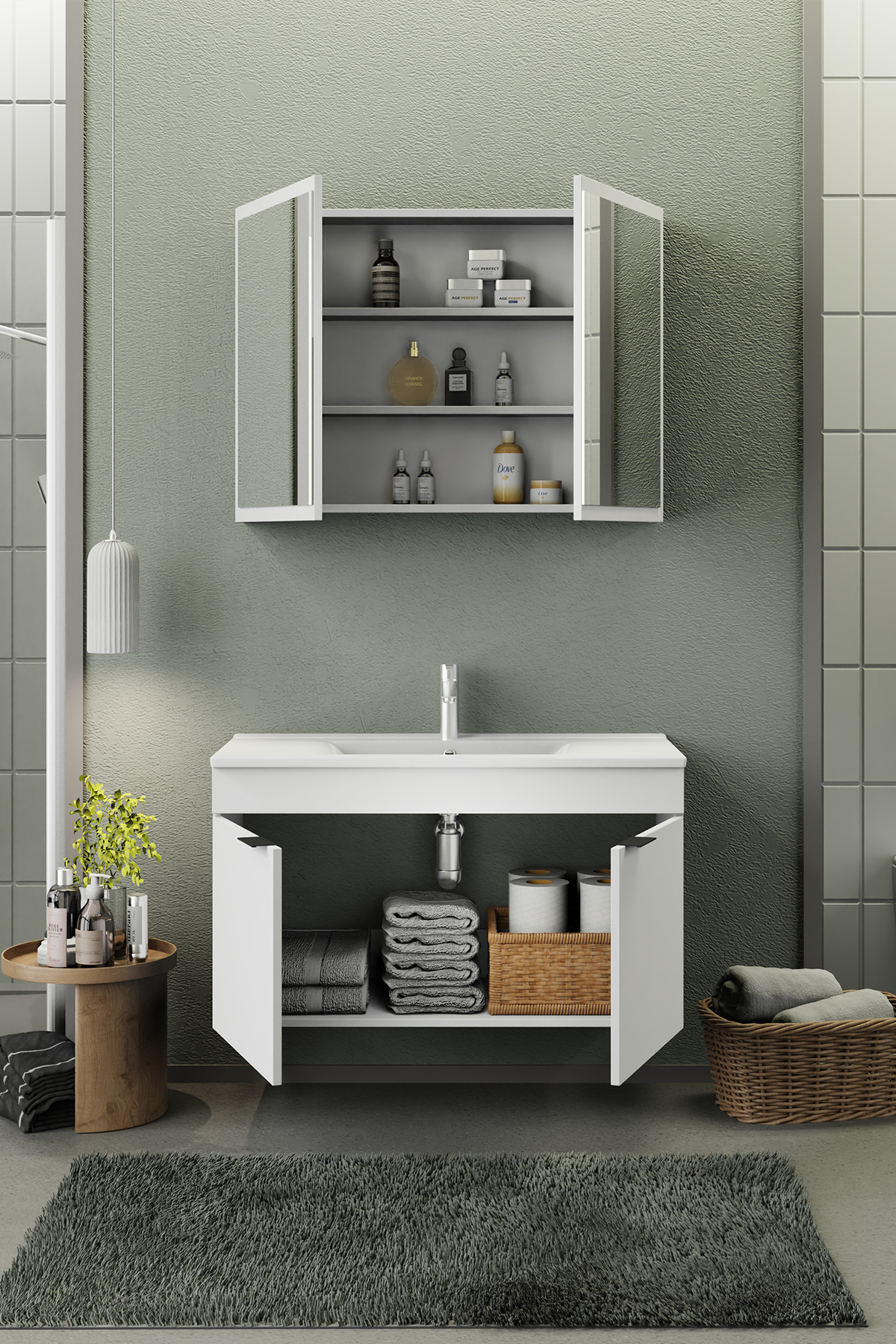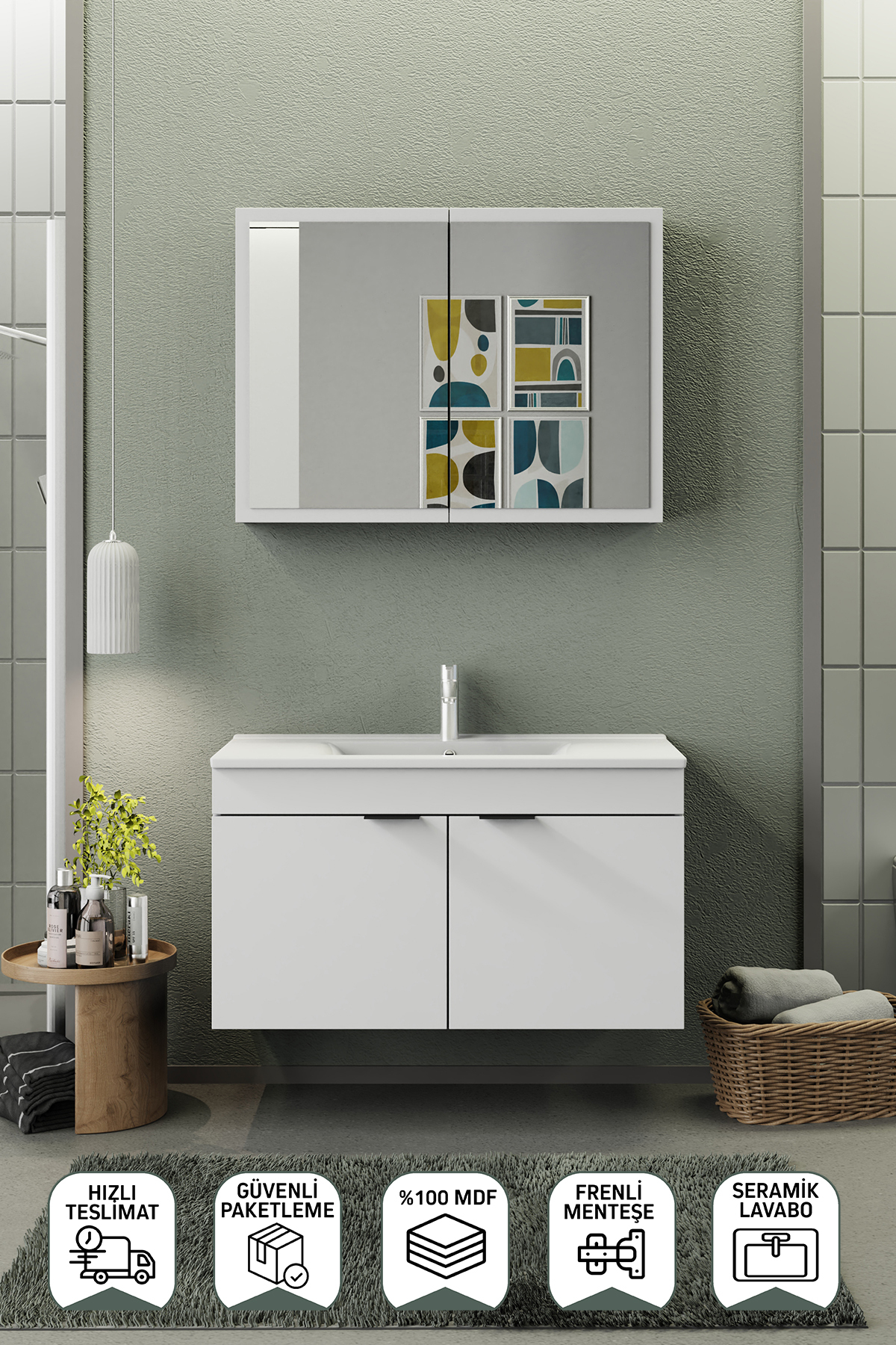 Biani Fix Loft 100 cm Banyo Dolabı Renk Mat Beyaz