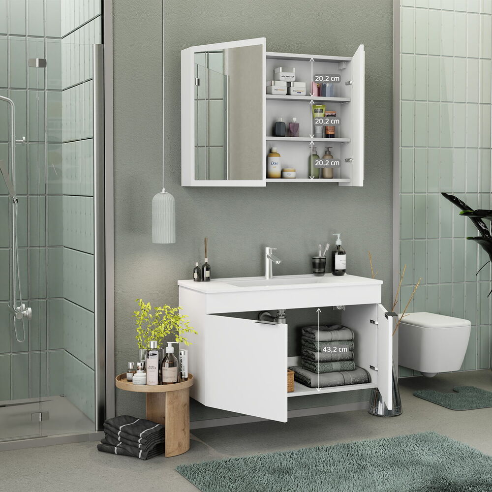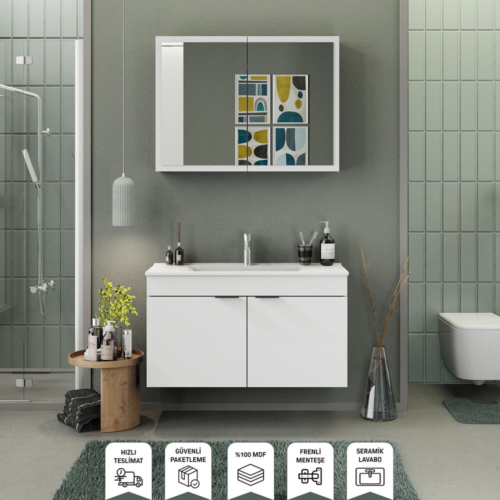 ÜRÜN ÖZELLİKLERİ DEMONTE BANYO DOLABI TEKNİK ÖZELLİKLER Gövde Malzemesi:18mm Mdflam Kapak Malzemesi:18mm Mdflam Menteşe:Yavaş Kapanır(Soft Closing) Gövde Rengi:Mat Beyaz Kapak Rengi:Mat Beyaz Ölçü:190*100*45 Lavabo:1.Kalite Seramik Ayna:4 mm Flotal Dolaplı Ayna ÜRÜN AÇIKLAMASI *Batarya ve Aksesuarlar Fiyata Dahil DEĞİLDİR. *Ürün Görselinde Sergilenen Boy Dolabı Fiyata Dahil DEĞİLDİR. *Lavabolar Özel Ambalajında Korunaklı Şekilde Sevk Edilmektedir. *Ürün 18 mm Kalınlığında 1.Kalite Malzeme’den Üretilmiştir. *Ürünlerde Kullanılan Tüm Malzemeler TSE Onaylı ve E1 Kalite Sertifika’sına Sahiptir. MONTAJ *Satın alınan ürün DEMONTE (Bir Araya Toplanmamış) Olarak Gönderilmektedir. *Ürün Kutu’dan Dikkatli Bir Şekilde Çıkarılıp,Terazi’ye Alındıktan Sonra Montajı Gerçekleştirilebilir.