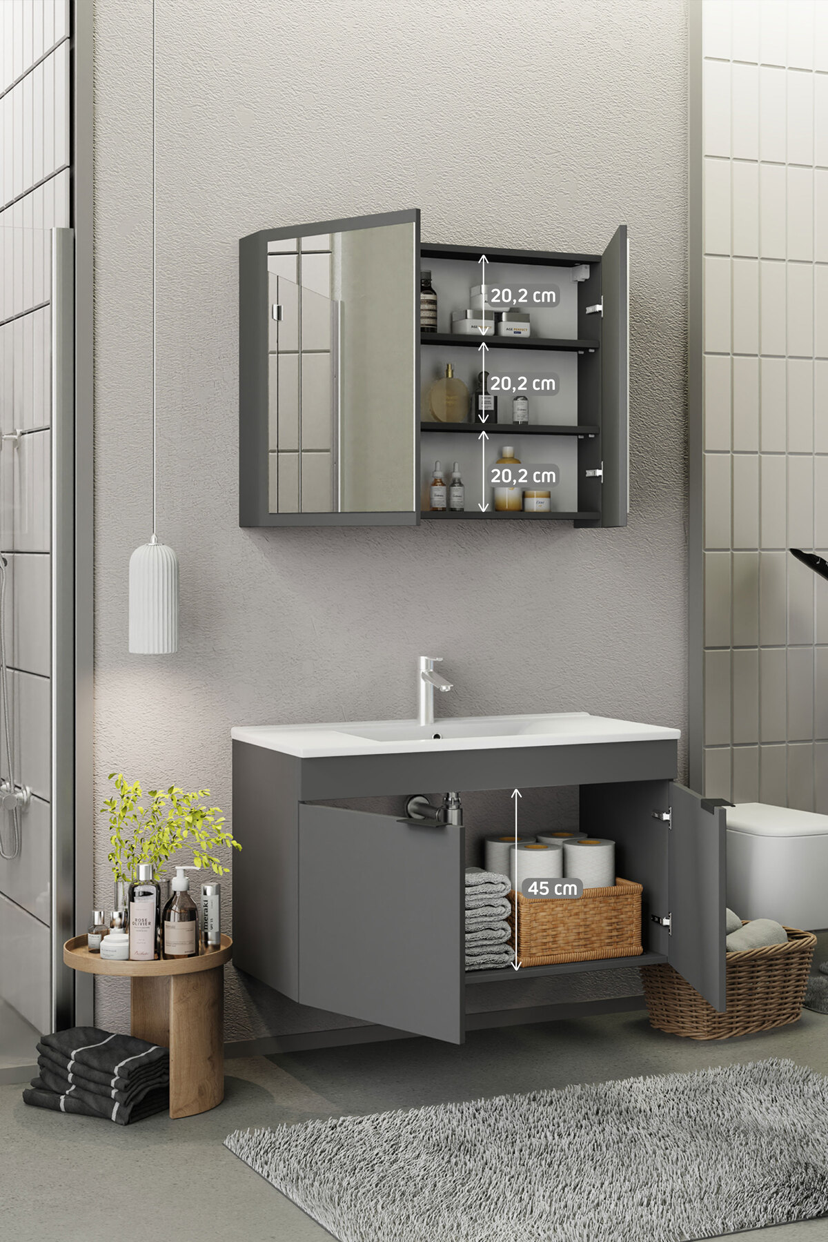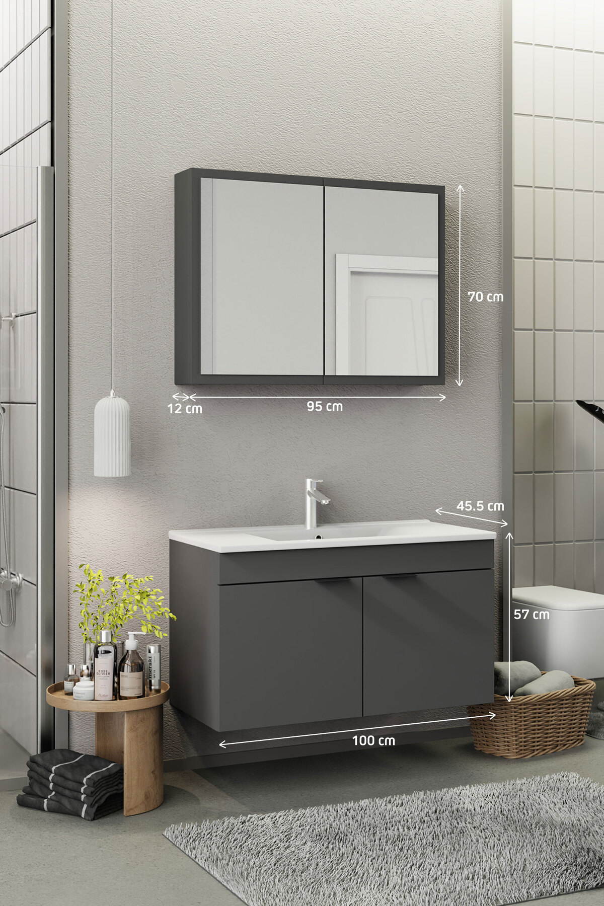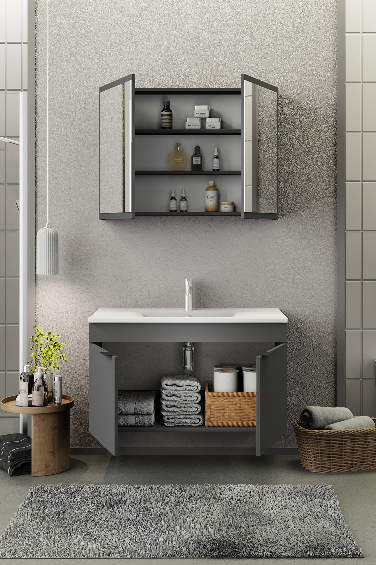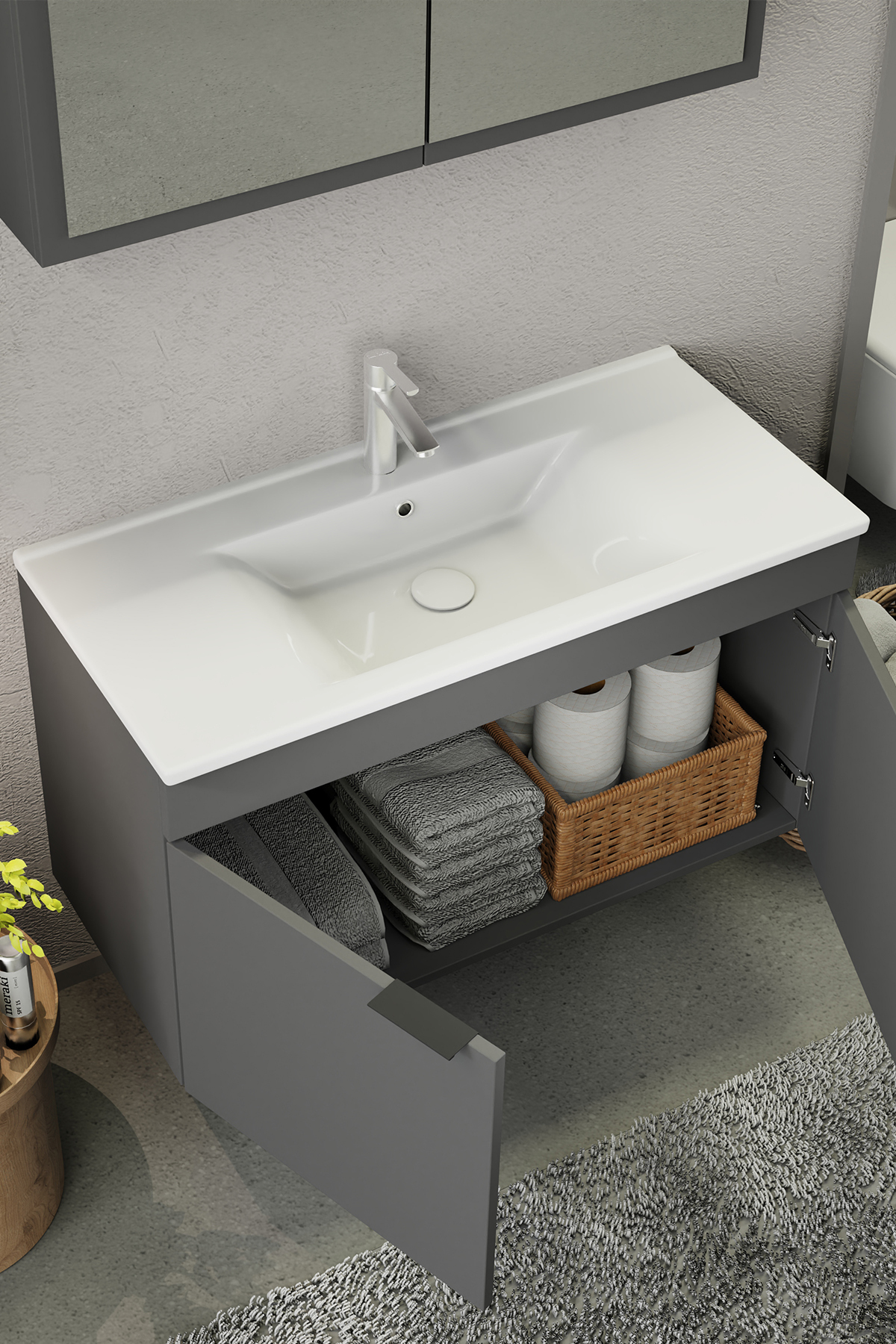 Biani Fix Loft 100 cm Banyo Dolabı Renk Mat Gri