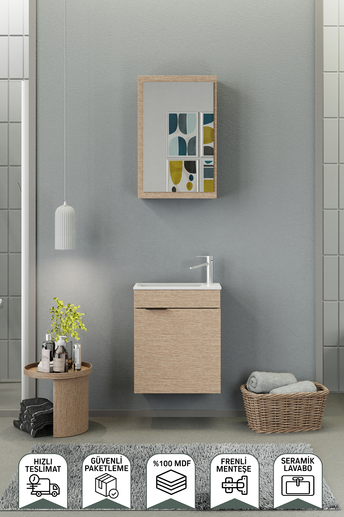 Biani Fix Loft 50 cm Banyo Dolabı Renk Aybe Bej