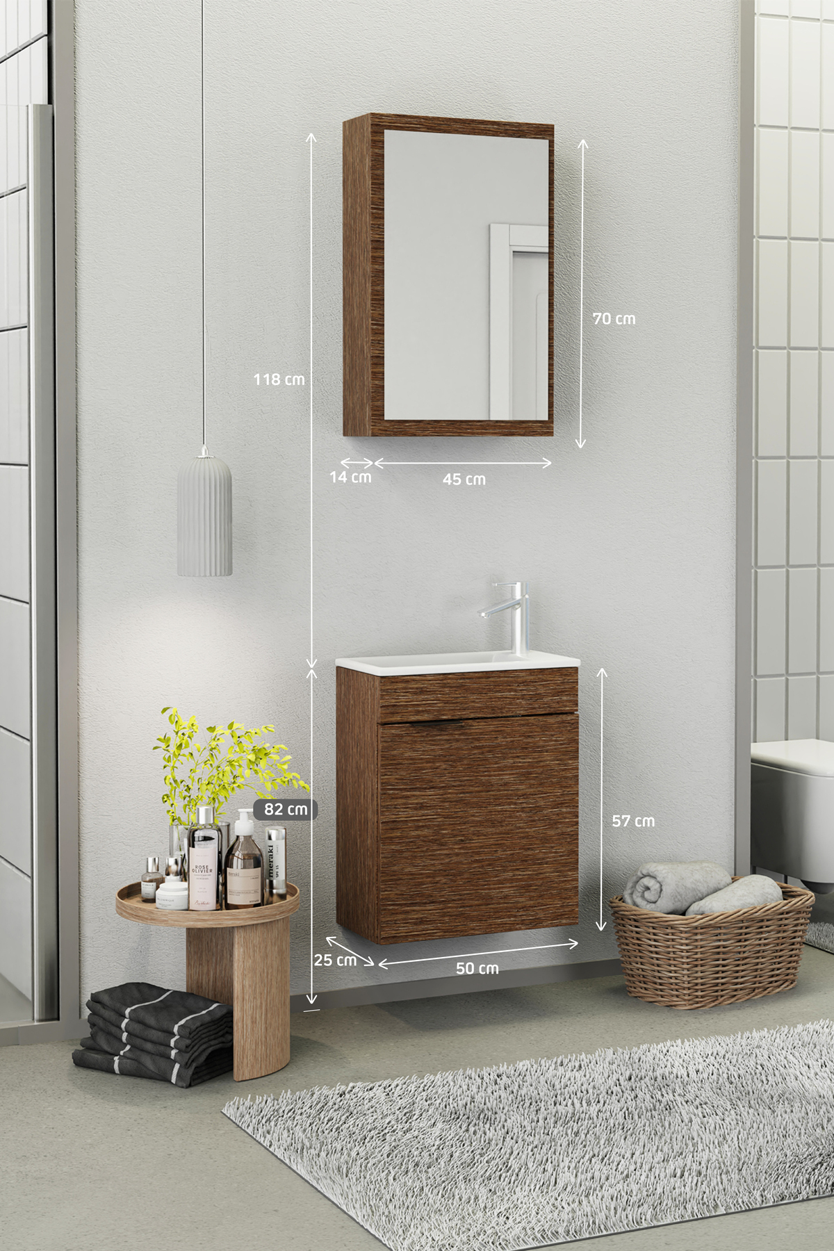 Biani Fix Loft 50 cm Banyo Dolabı Renk Aybe Kahve