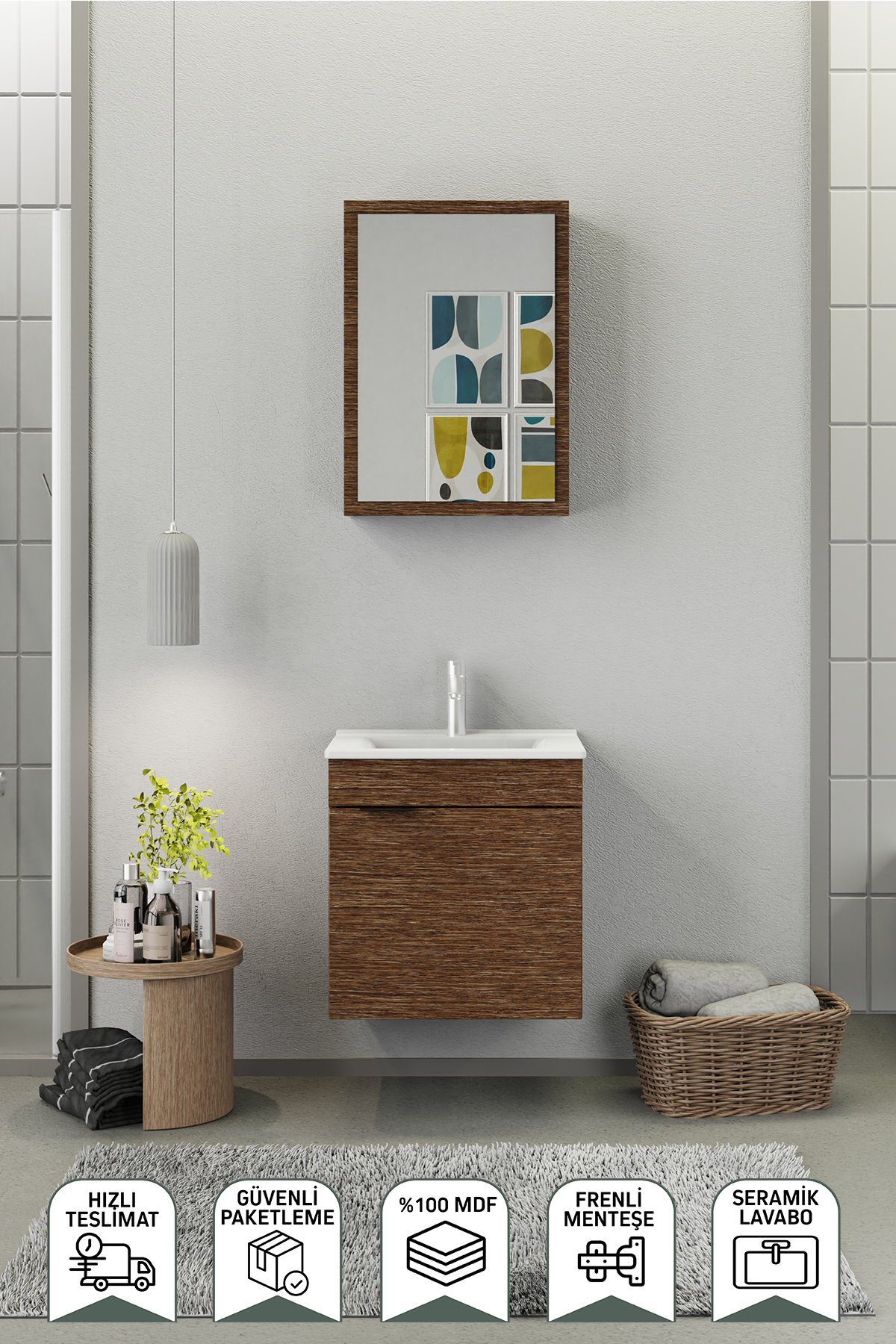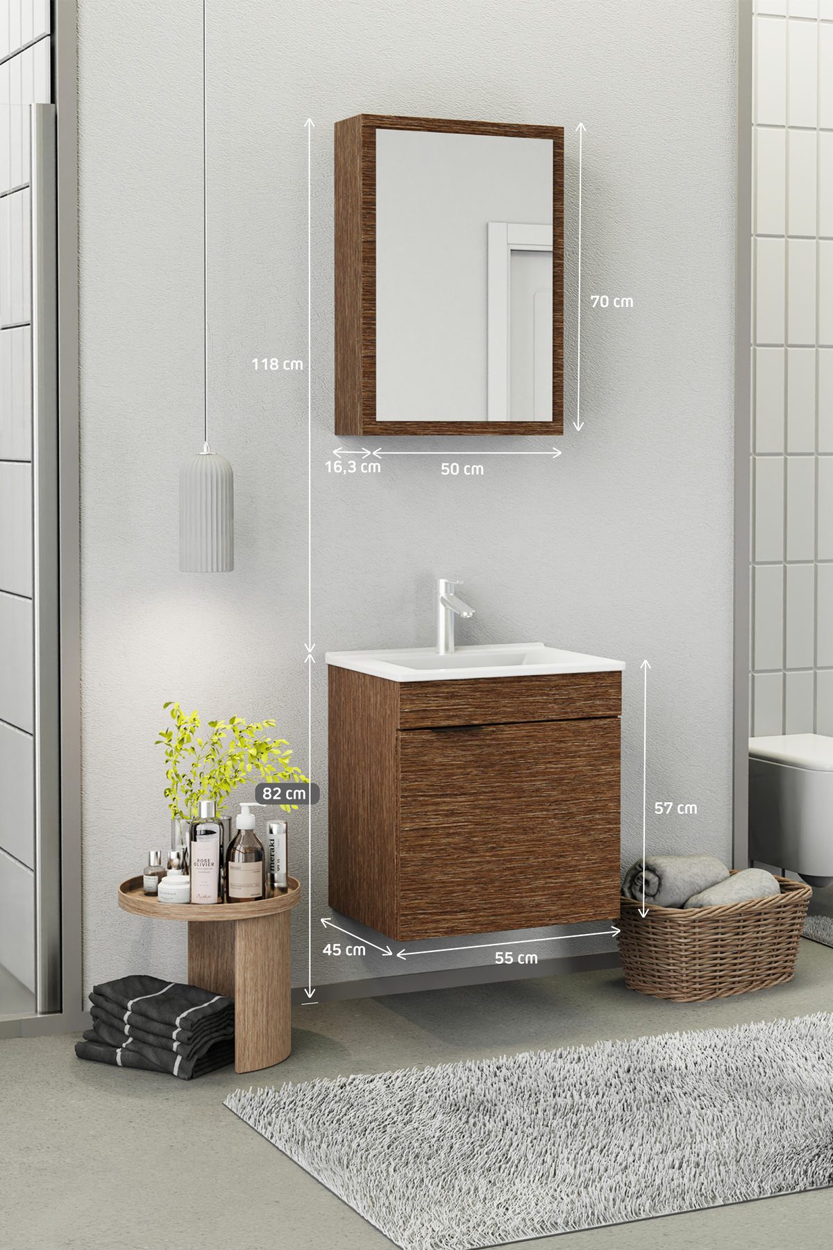 Biani Fix Loft 55 cm Banyo Dolabı Renk Aybe Kahve
