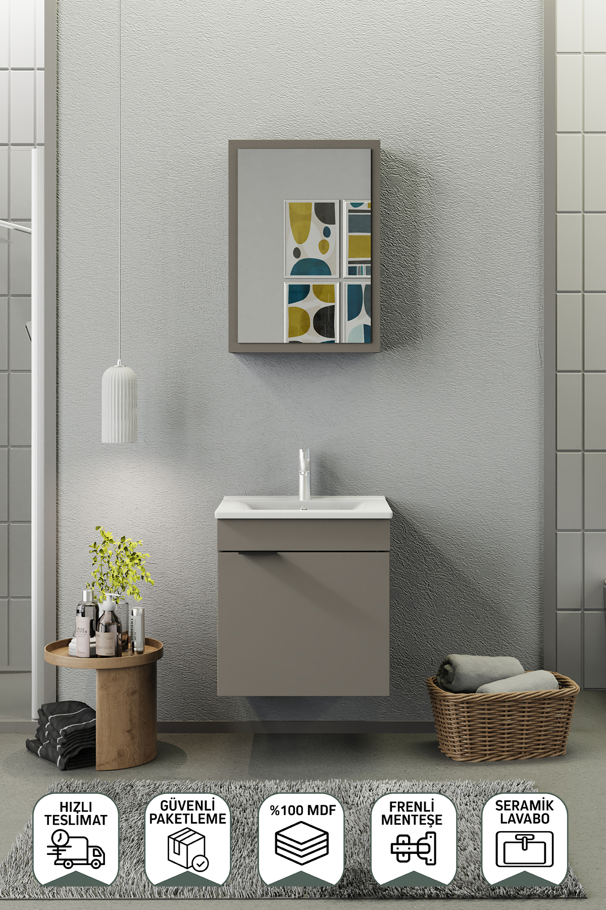 Biani Fix Loft 55 cm Latte Banyo Dolabı