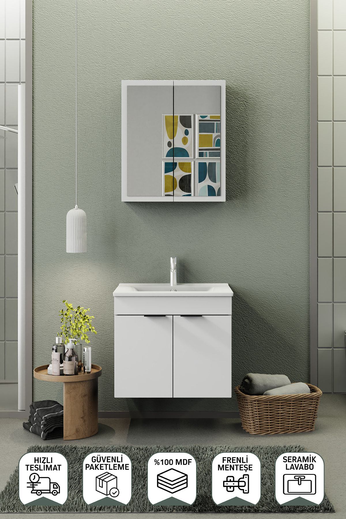 Biani Fix Loft 65 cm Banyo Dolabı Renk Mat Beyaz