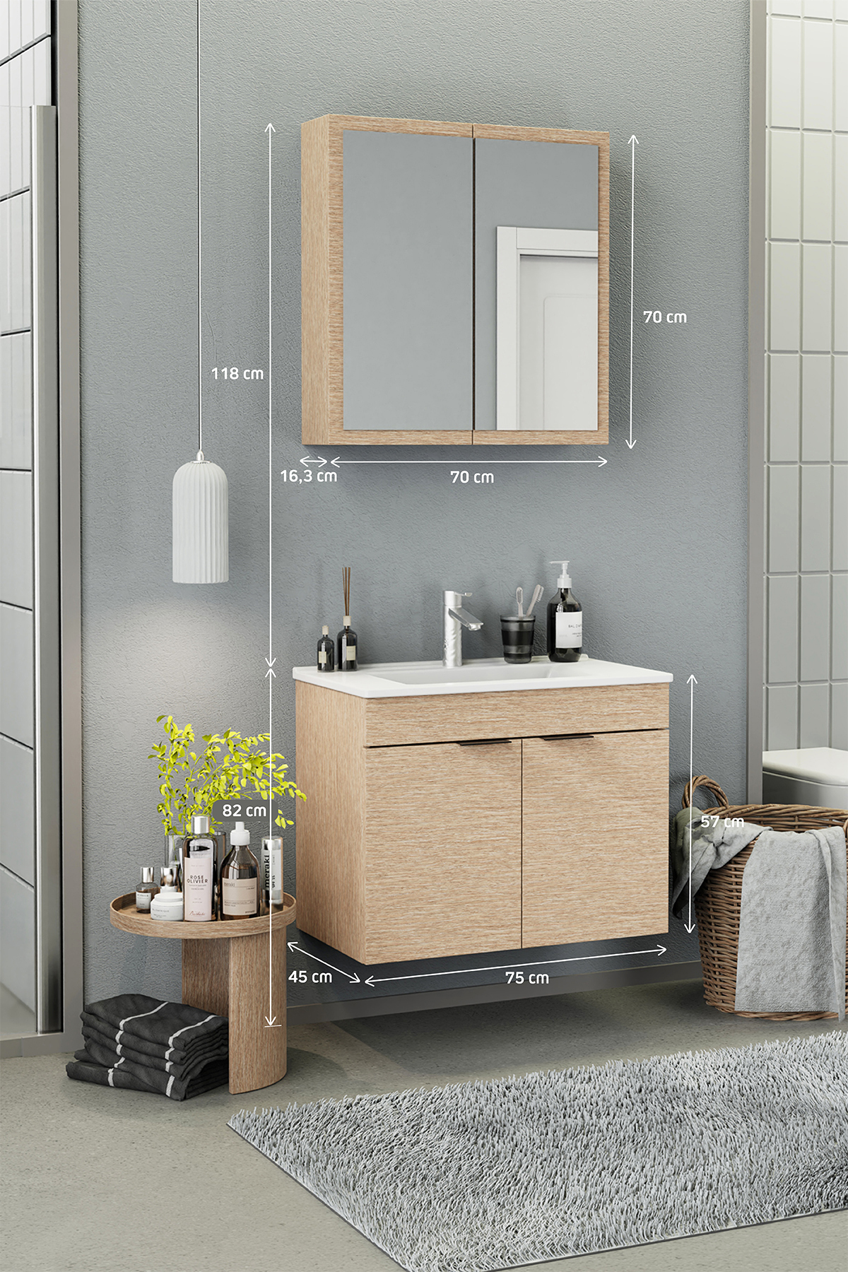 Biani Fix Loft 75 cm Banyo Dolabı Renk Aybe Bej