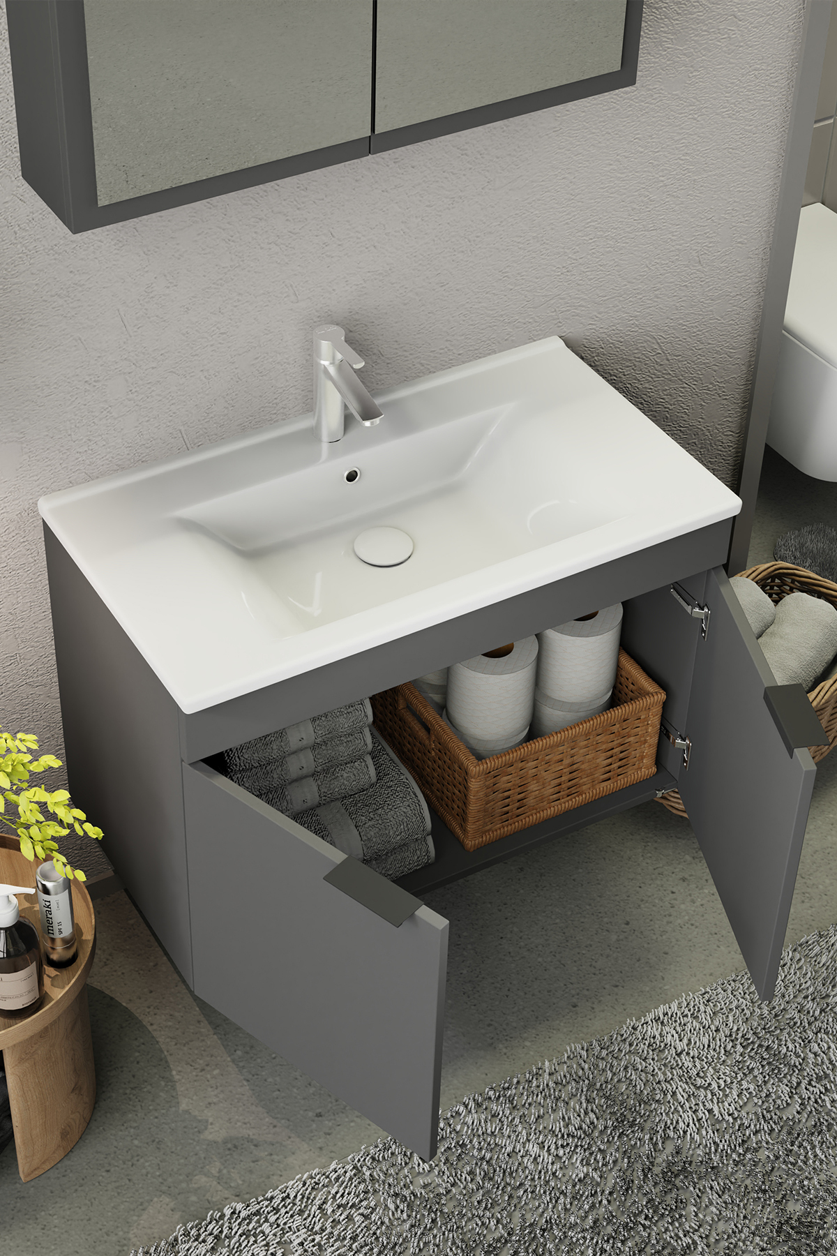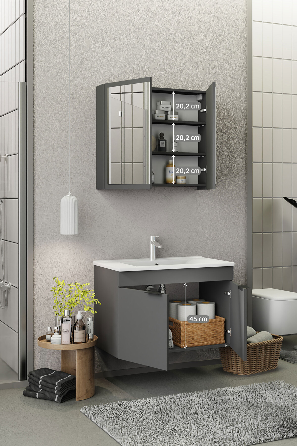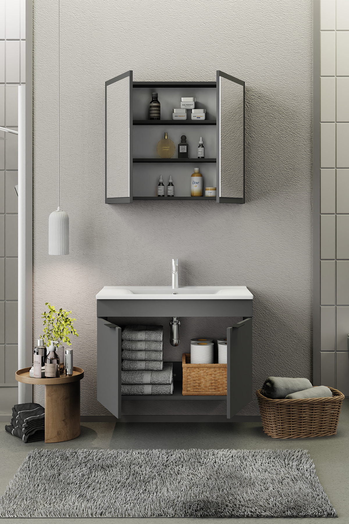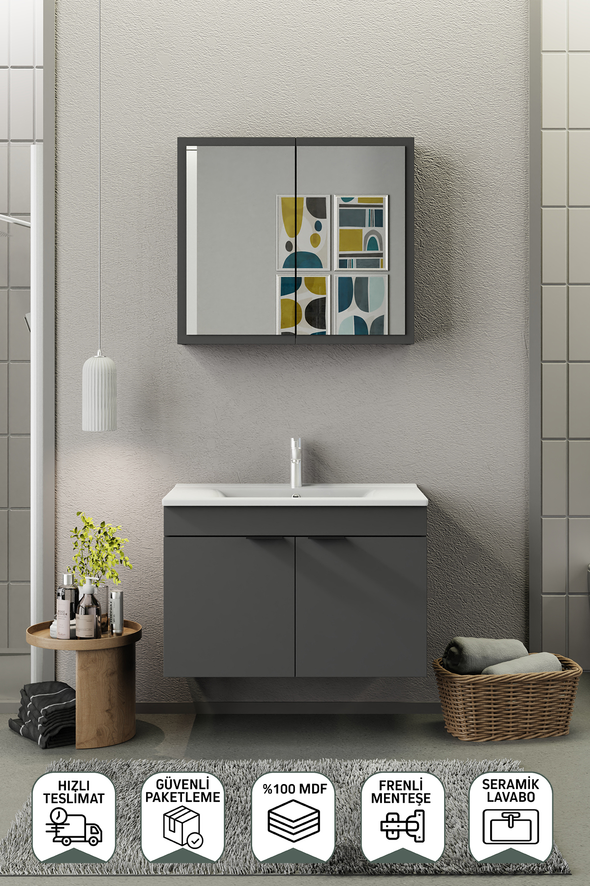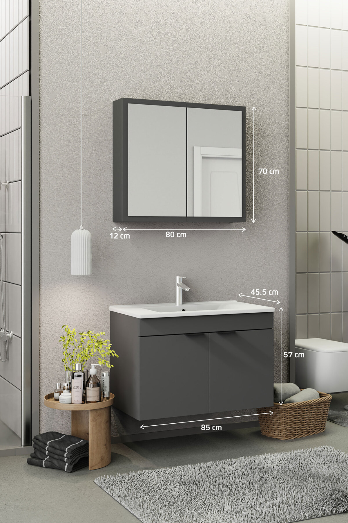 Biani Fix Loft 85 cm Mat Gri Banyo Dolabı