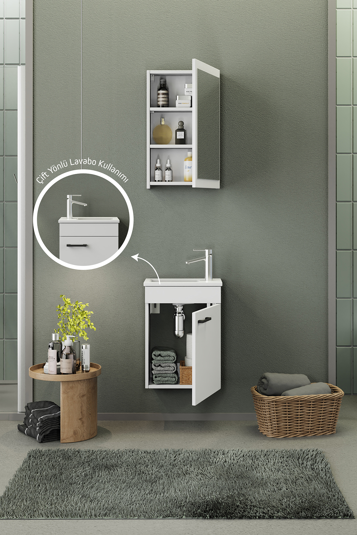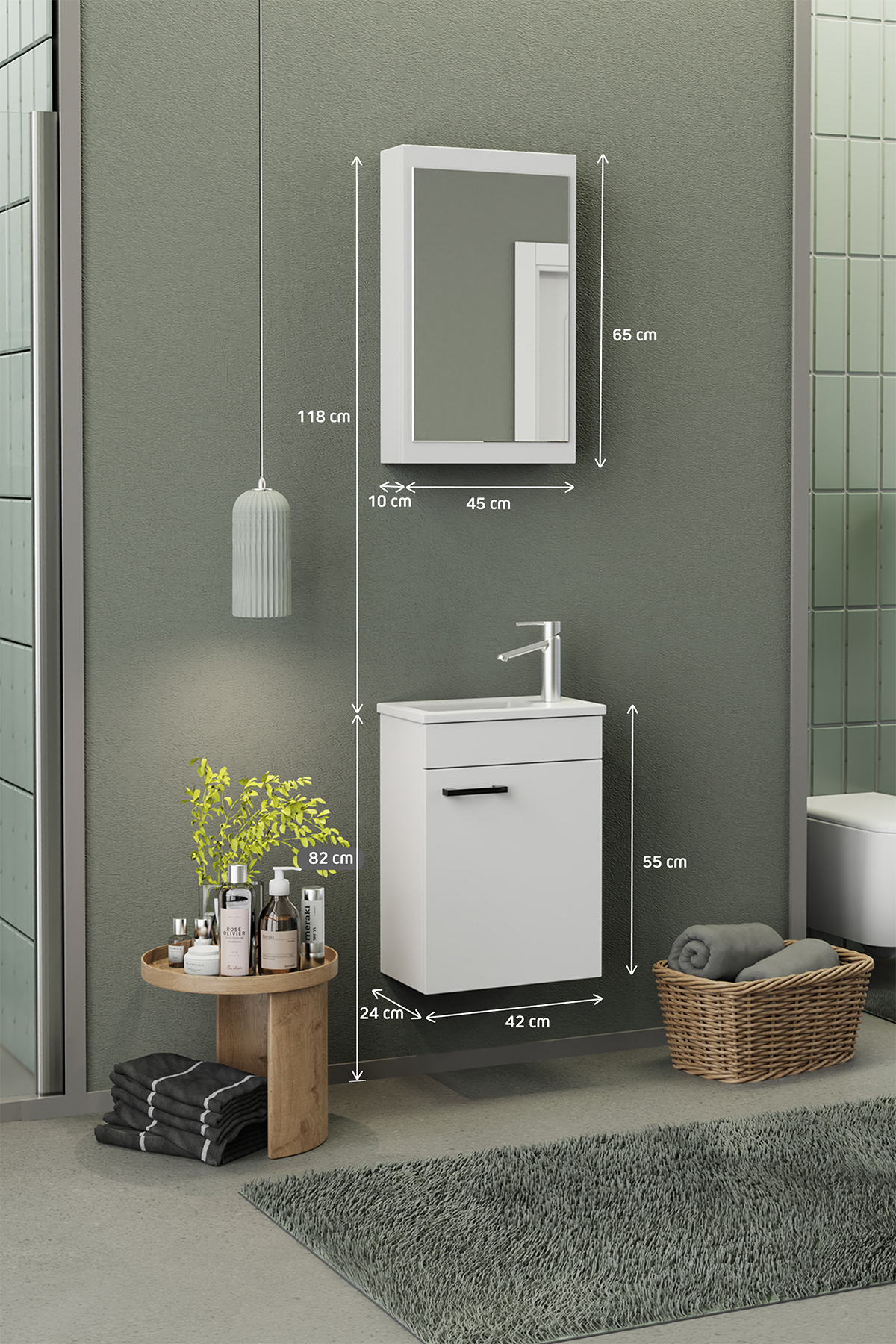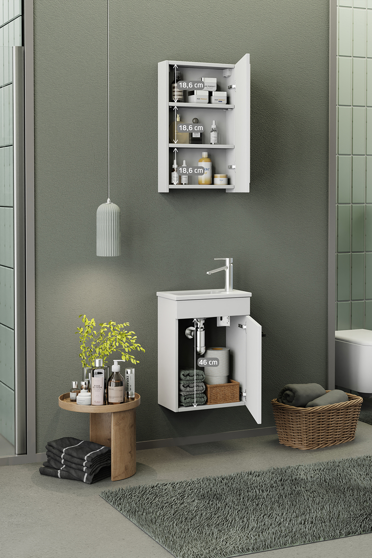 Biani Fix Loft Mini 42 cm Banyo Dolabı Mat Beyaz
