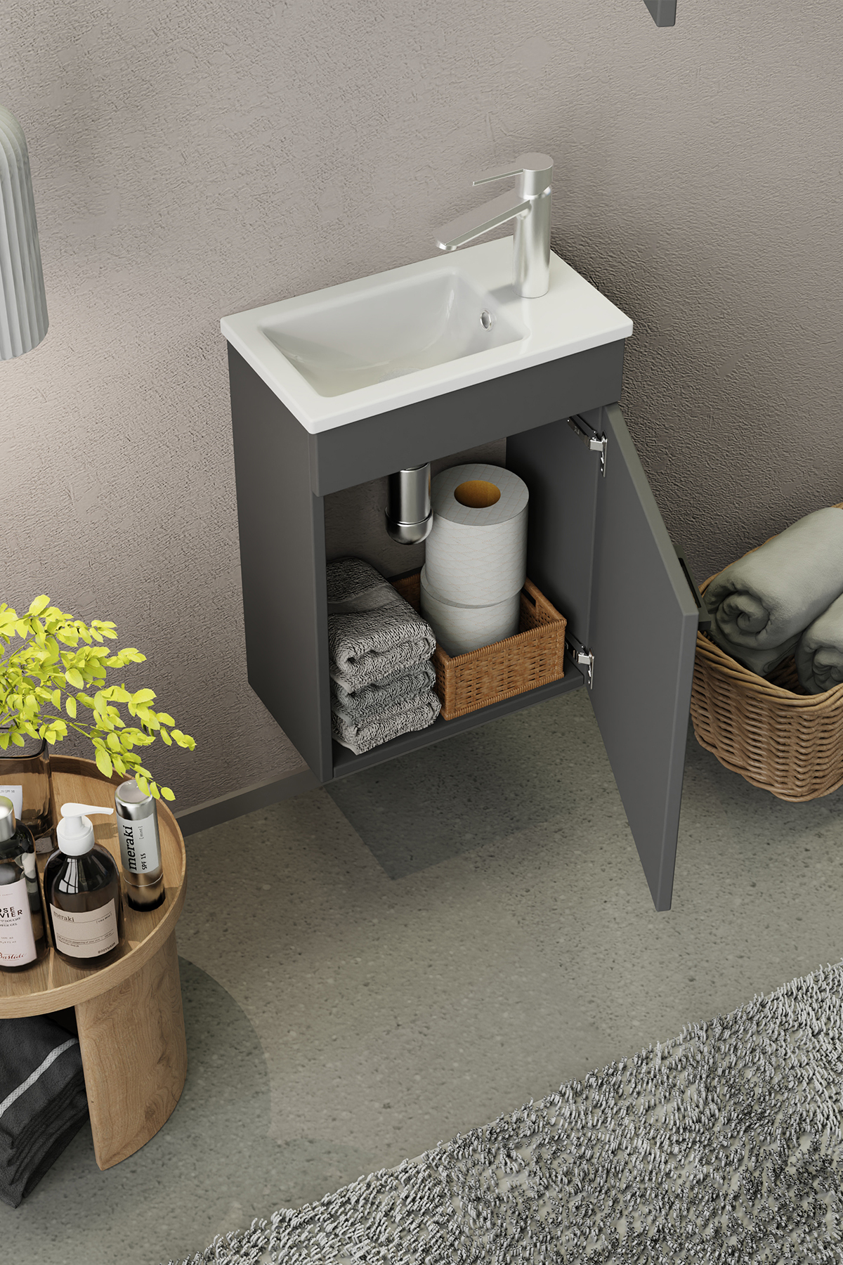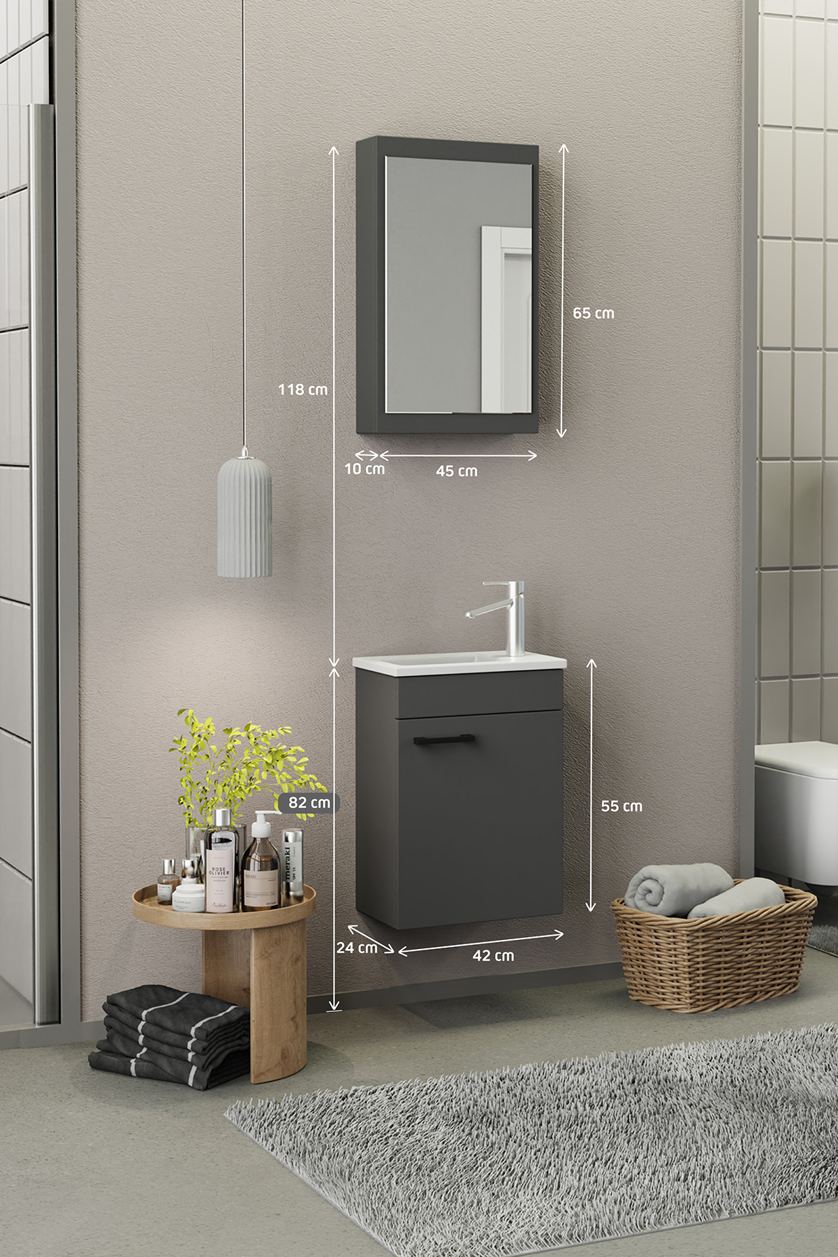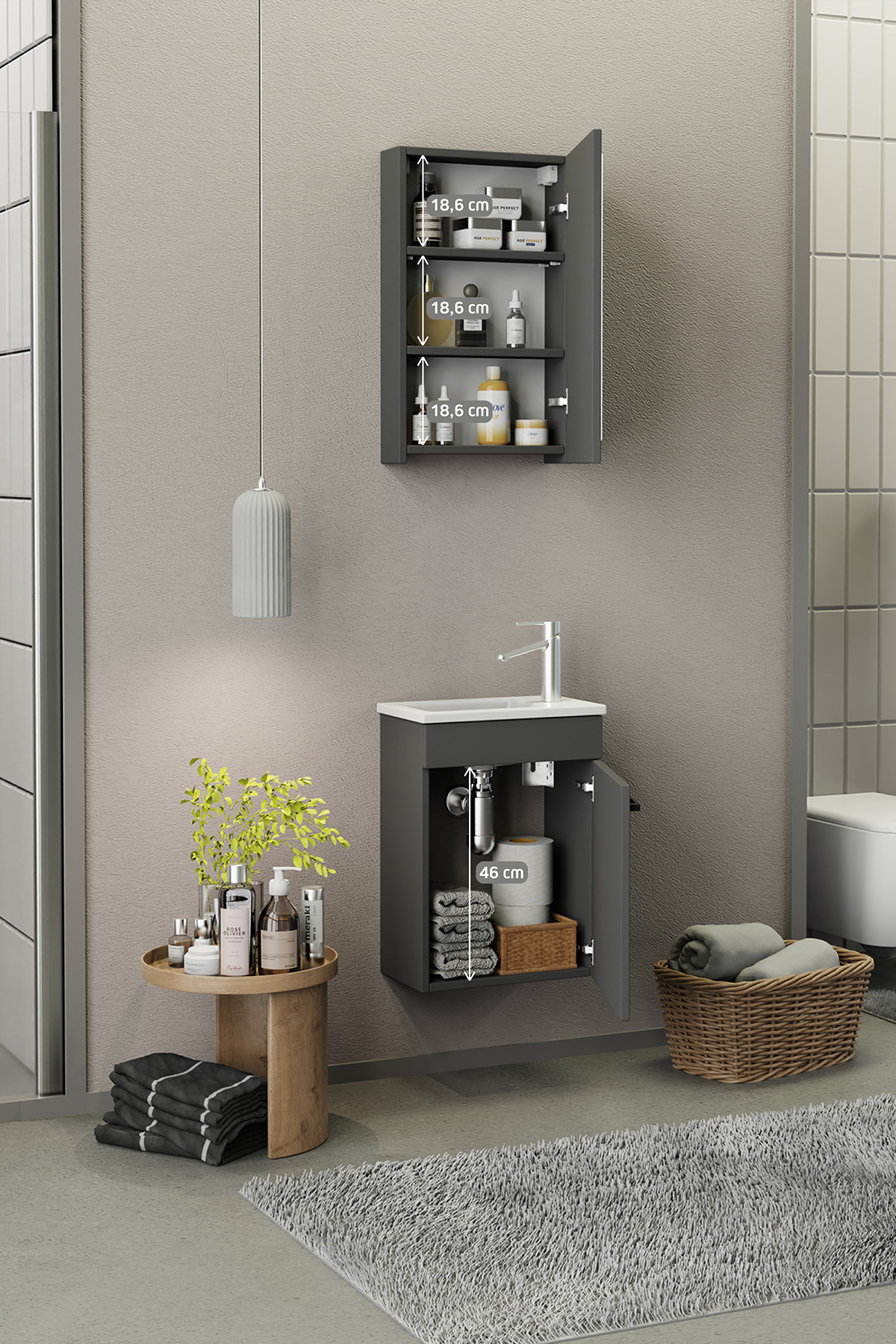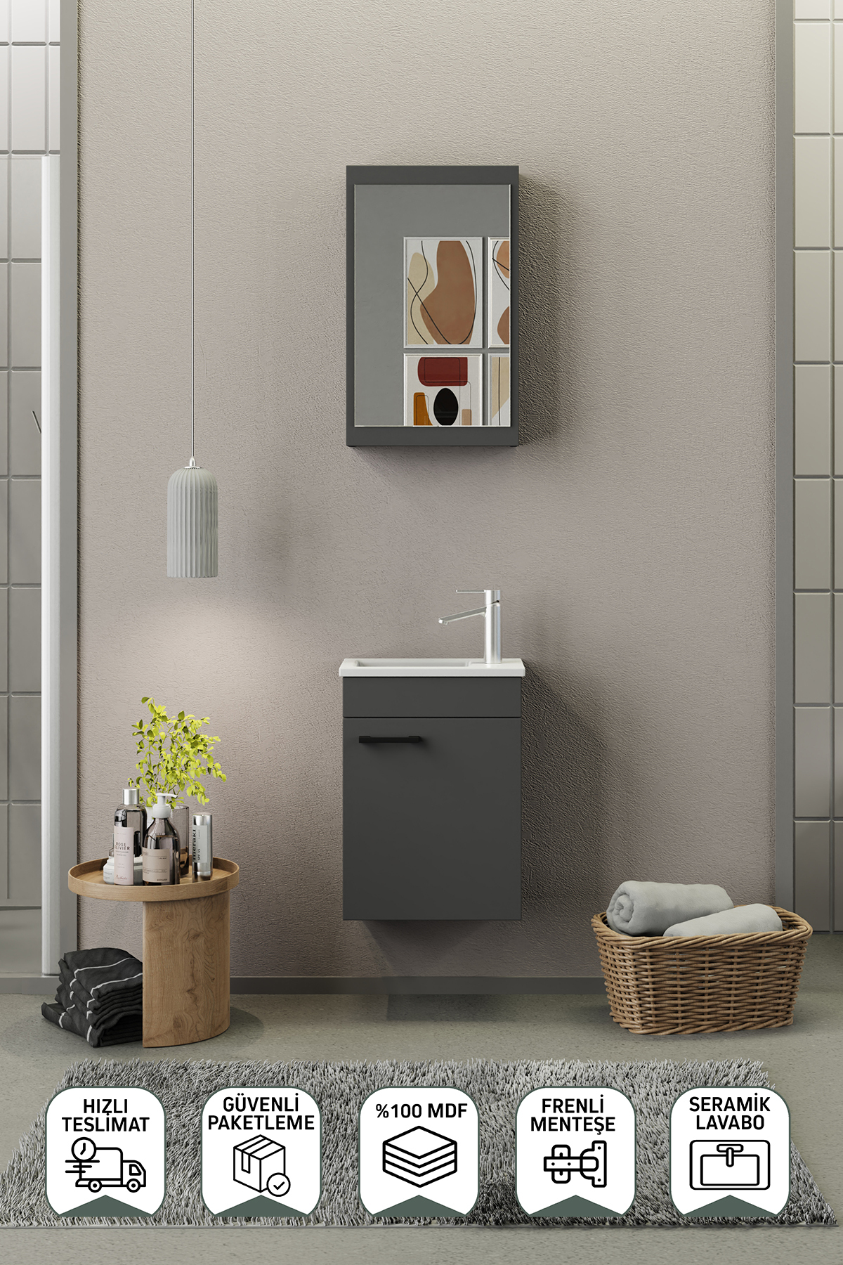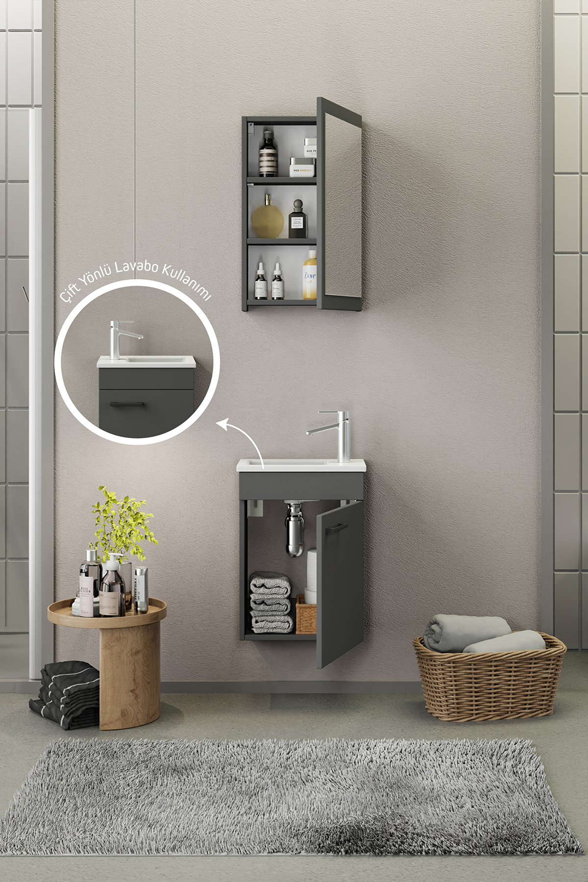 Biani Fix Loft Mini 42 cm Banyo Dolabı Mat Gri