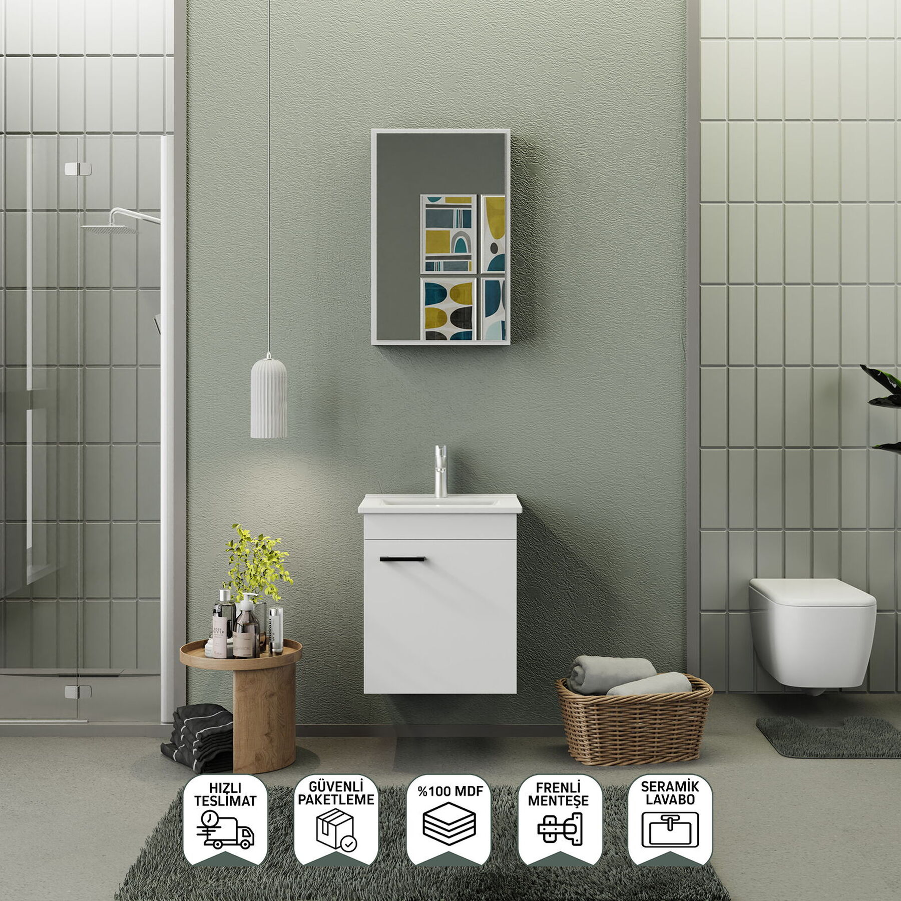 Biani Fix Arya Mini 42 cm Banyo Dolabı Mat Beyaz