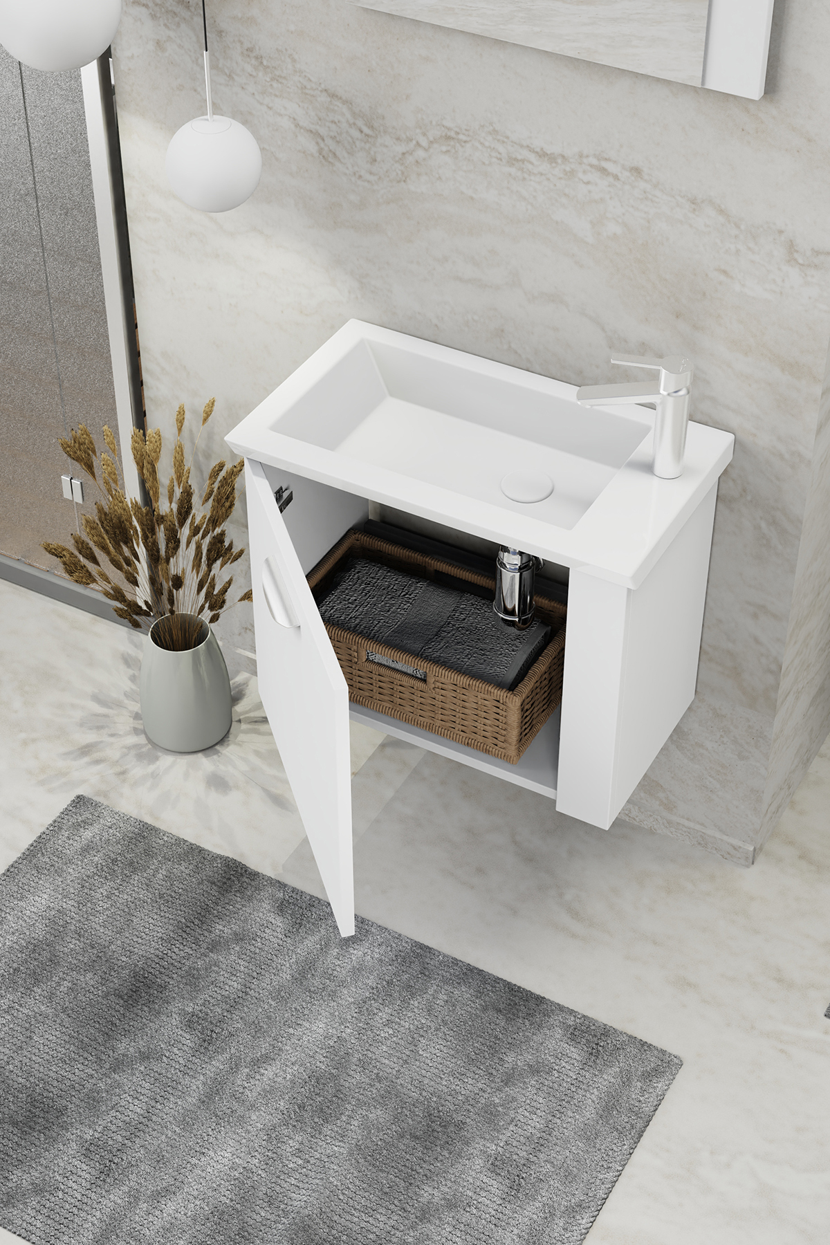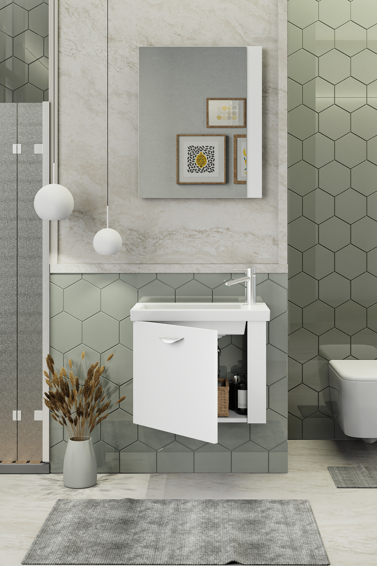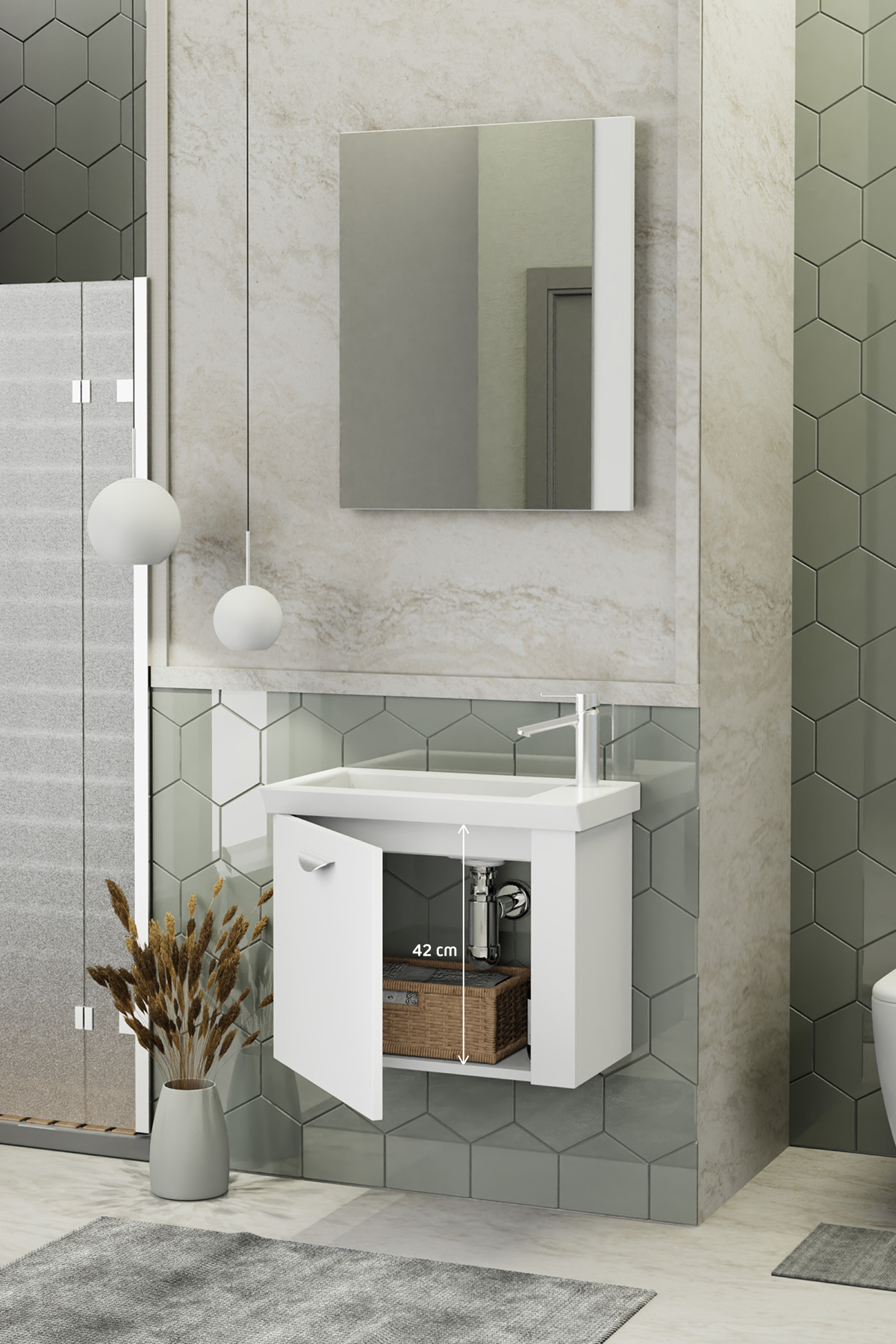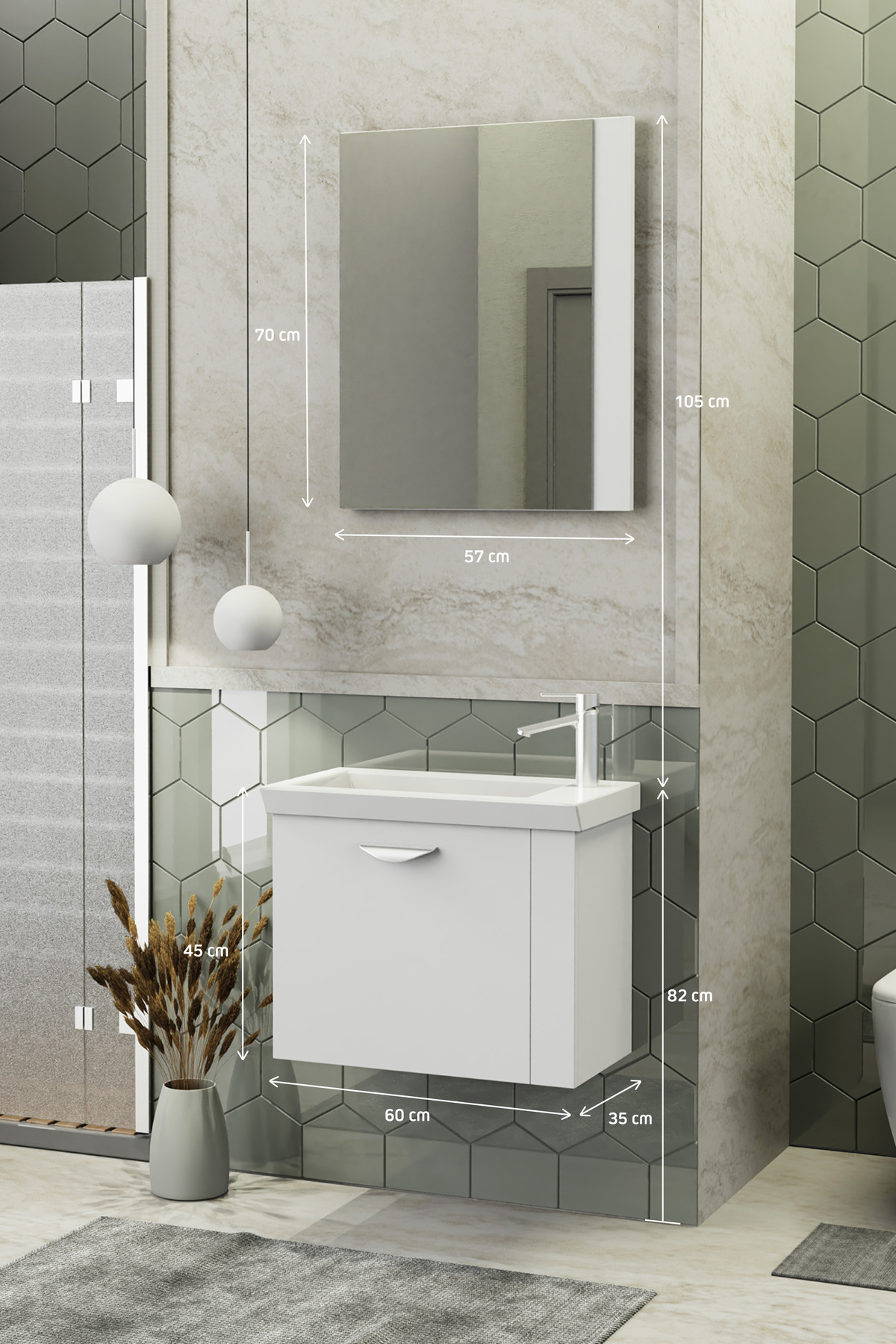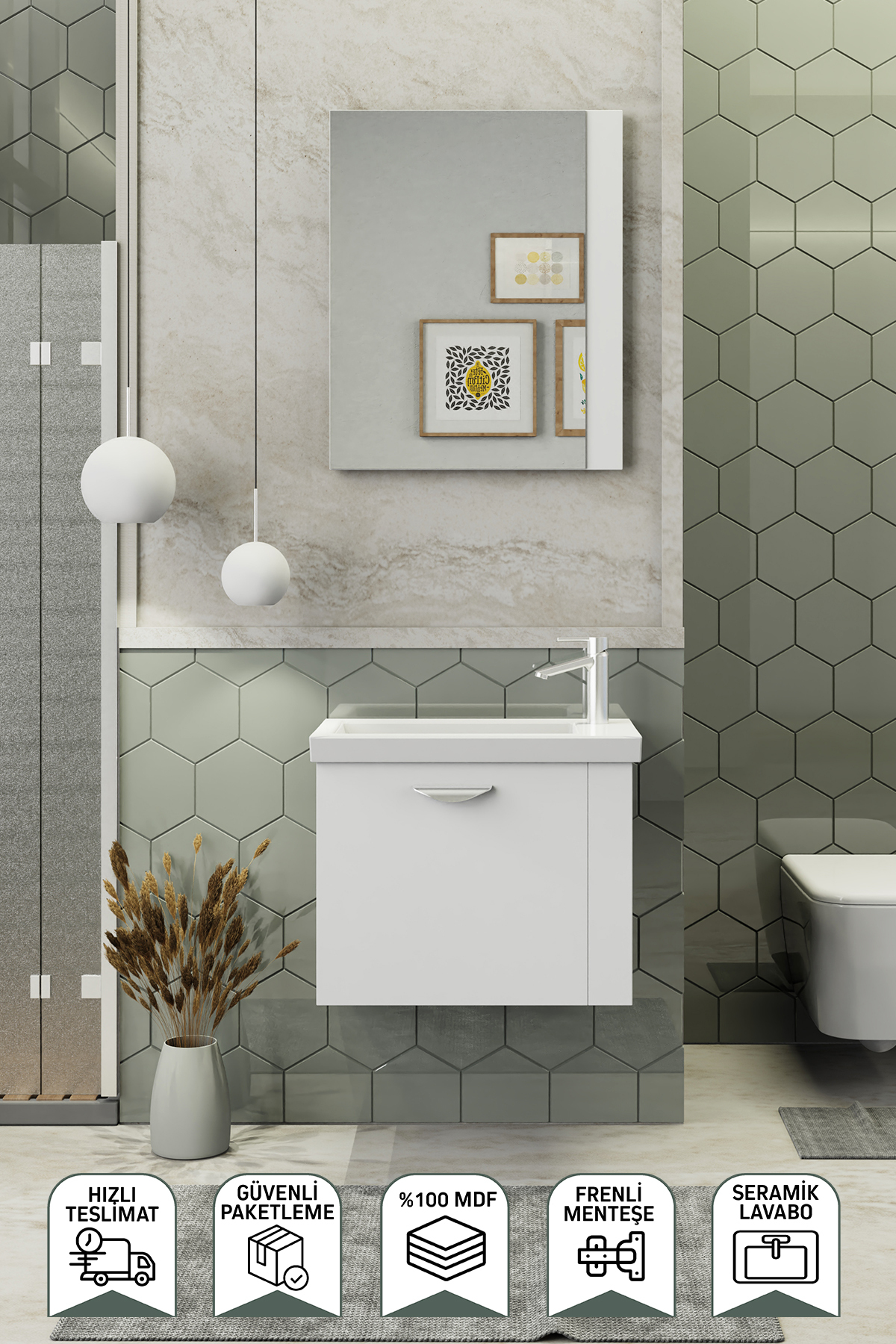 Biani Fix Maxila 60 cm Mat Beyaz Banyo Dolabı