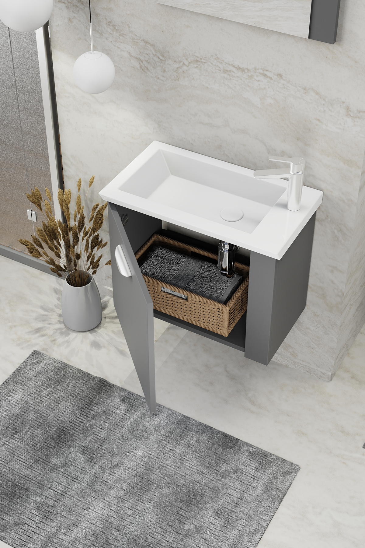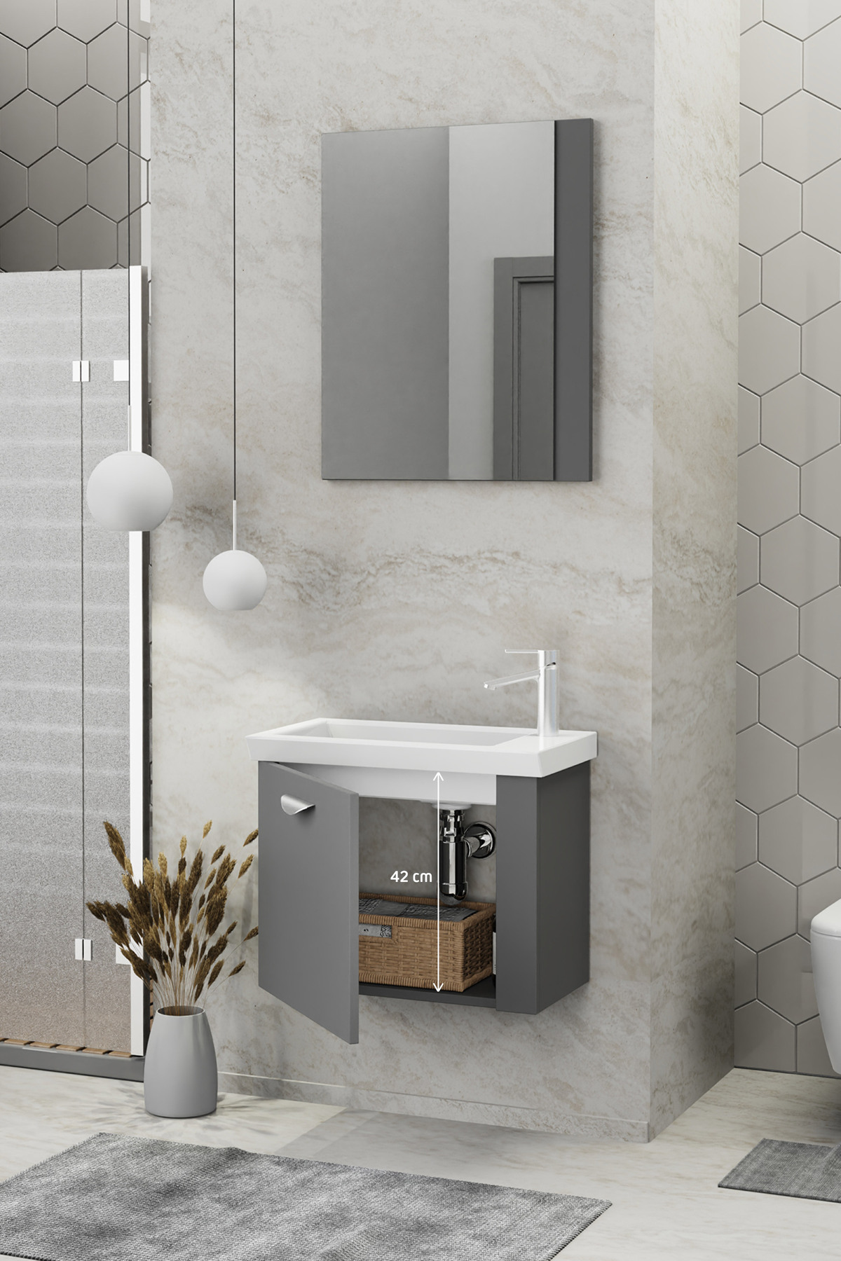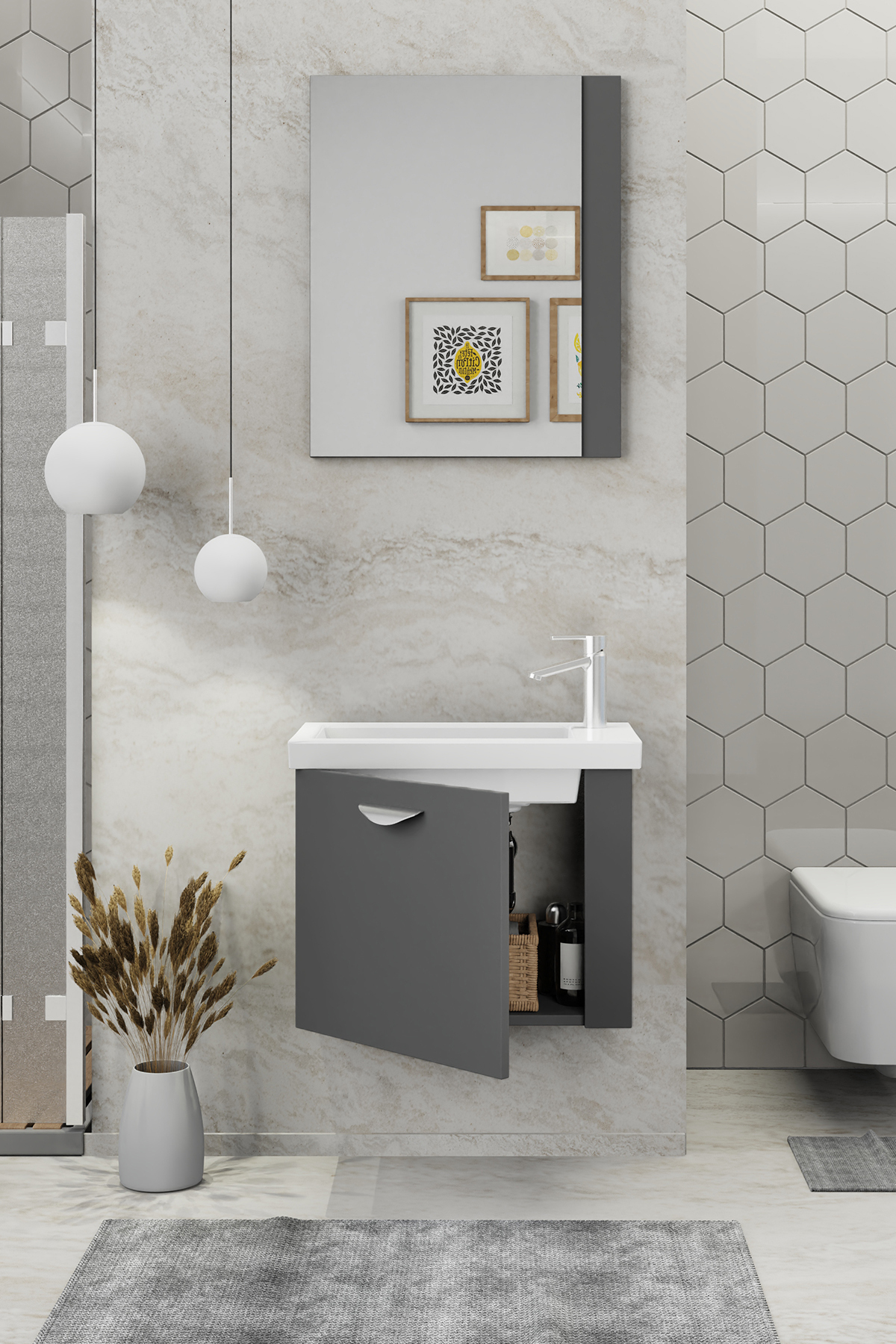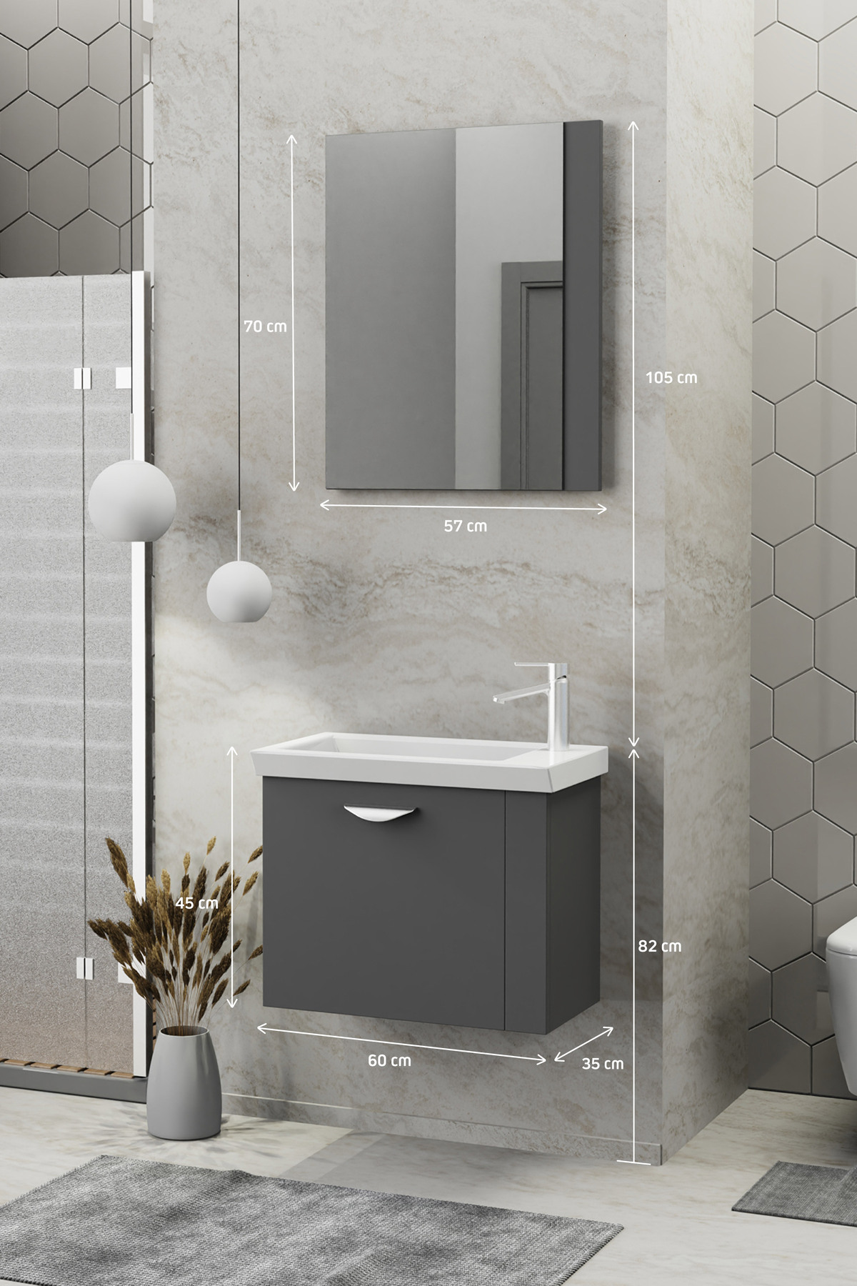 Biani Fix Maxila 60 cm Mat Gri Banyo Dolabı