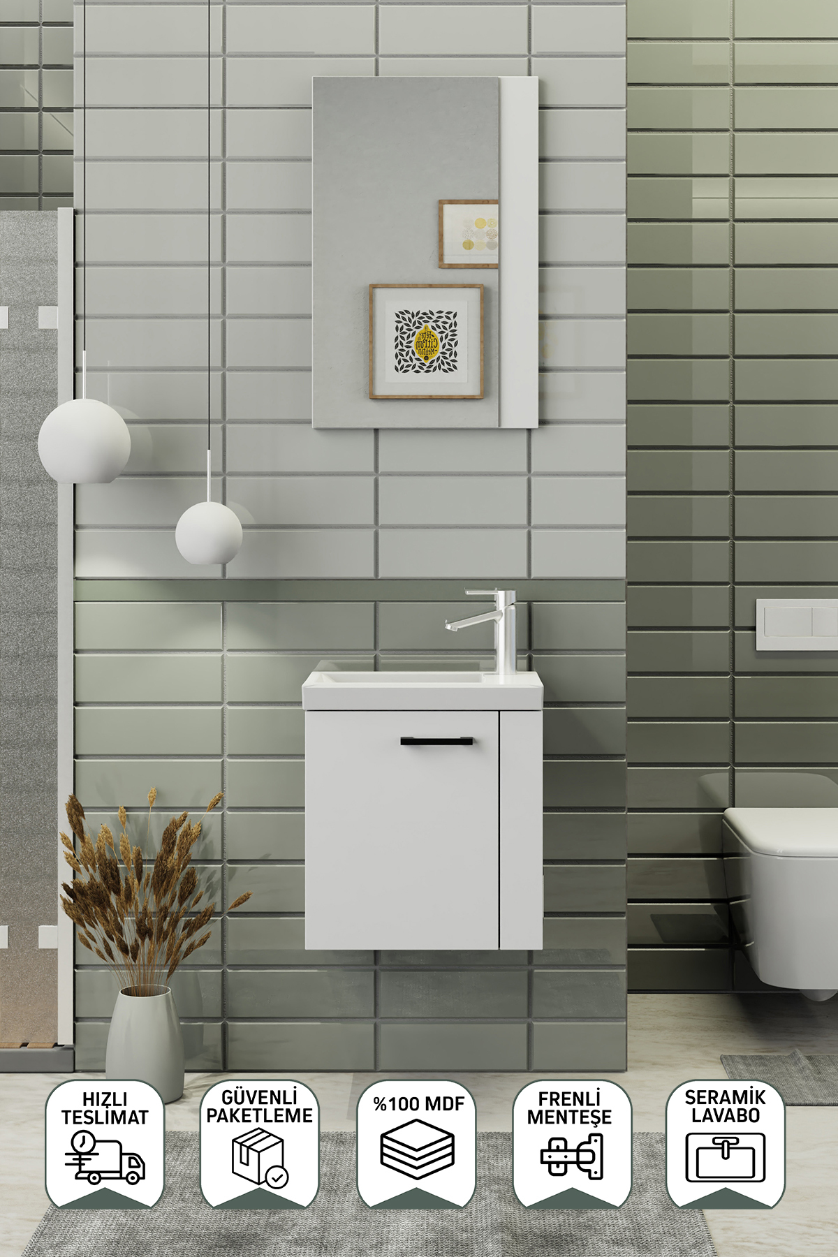 Biani Fix Minila 45 cm Mat Beyaz Banyo Dolabı