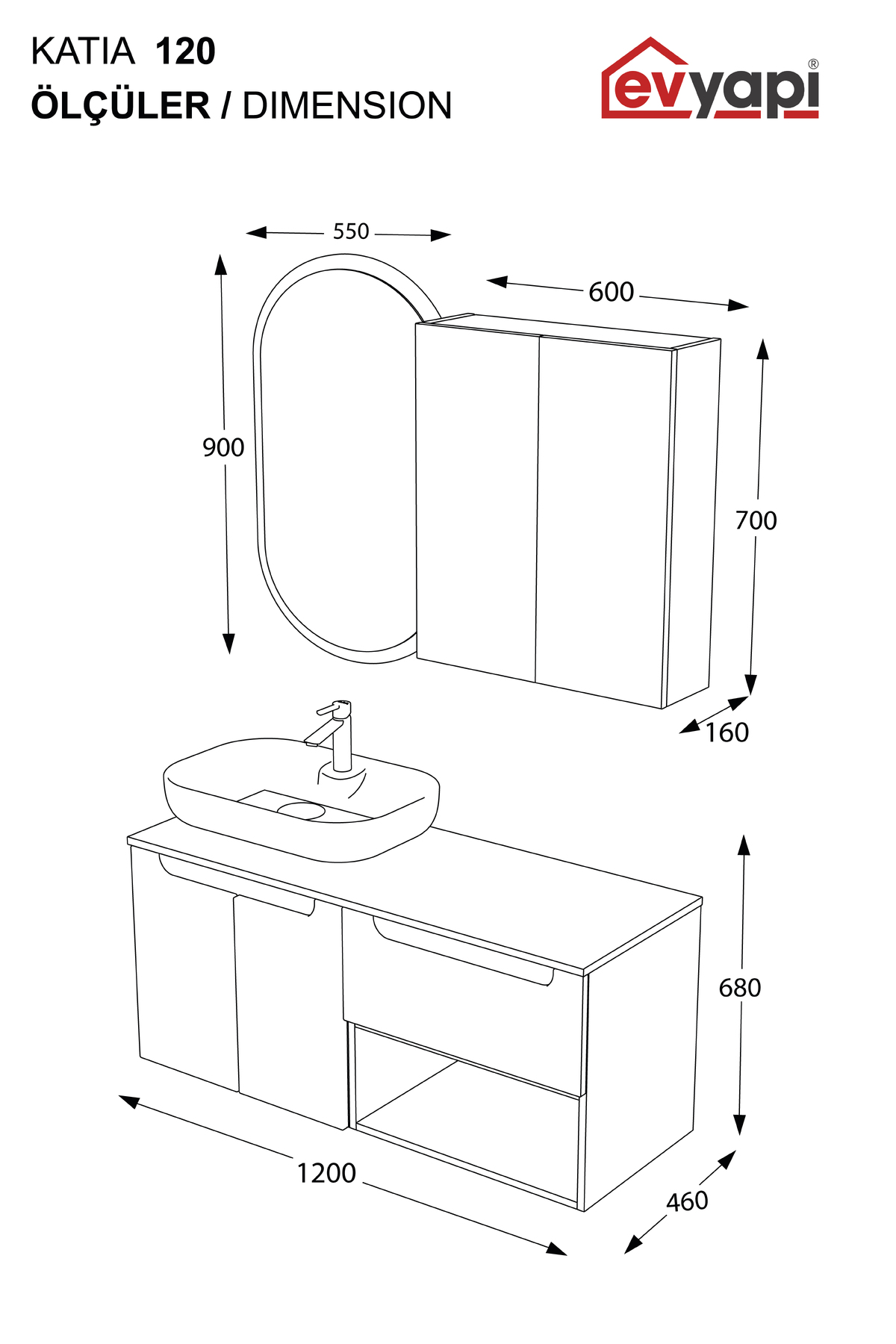 Biani Katia 120 cm Banyo Dolabı Renk Buz Mavisi