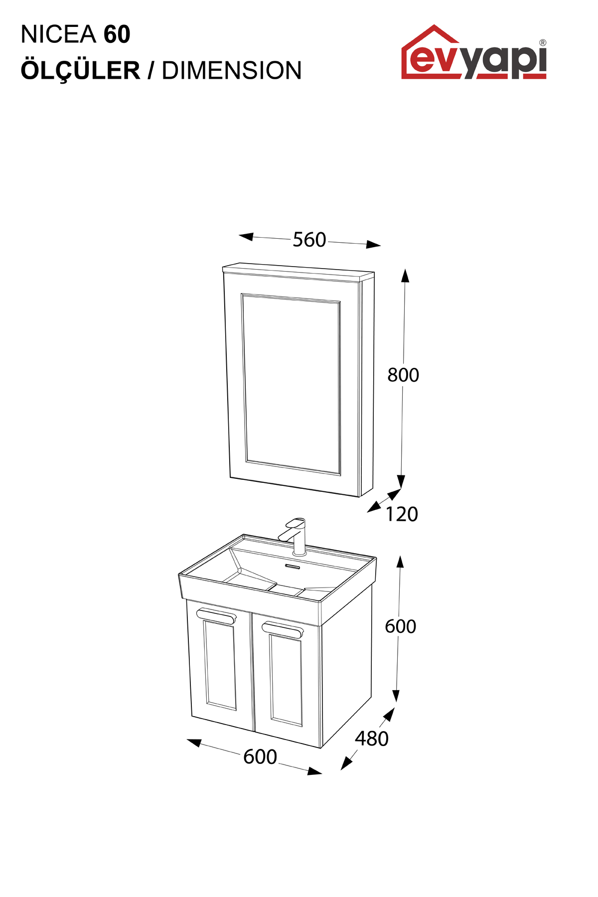 Biani Nıcea 60 cm Banyo Dolabı Beyaz