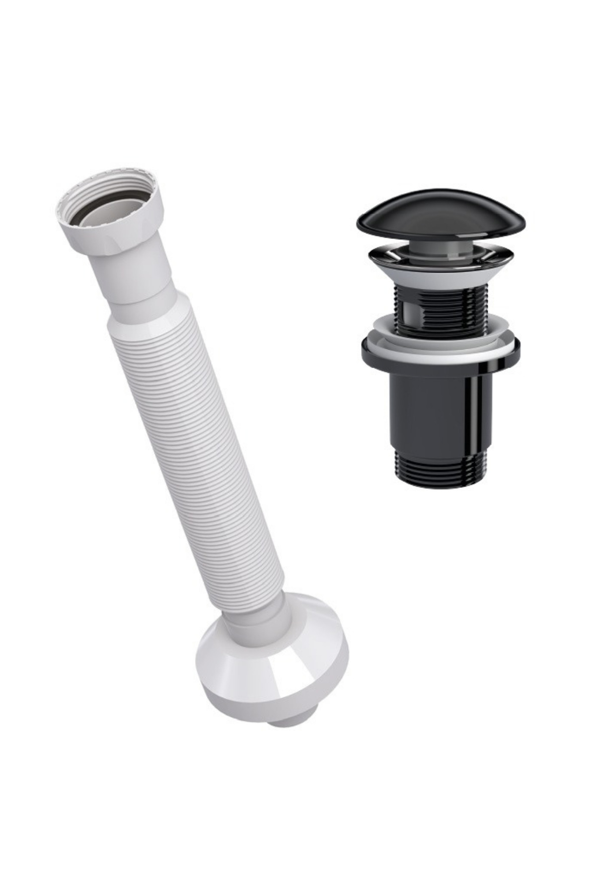 İzyapı Taşma Delikli P.Siyah Seramik Aç Kapa Körüklü Lavabo Sifonu