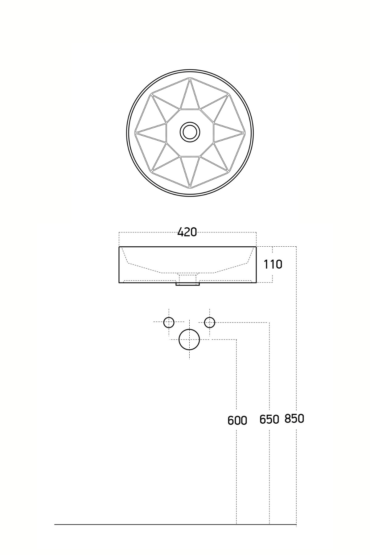 Lucco Diamante 42 Cm Tezgah Üstü Yuvarlak Lavabo Beyaz