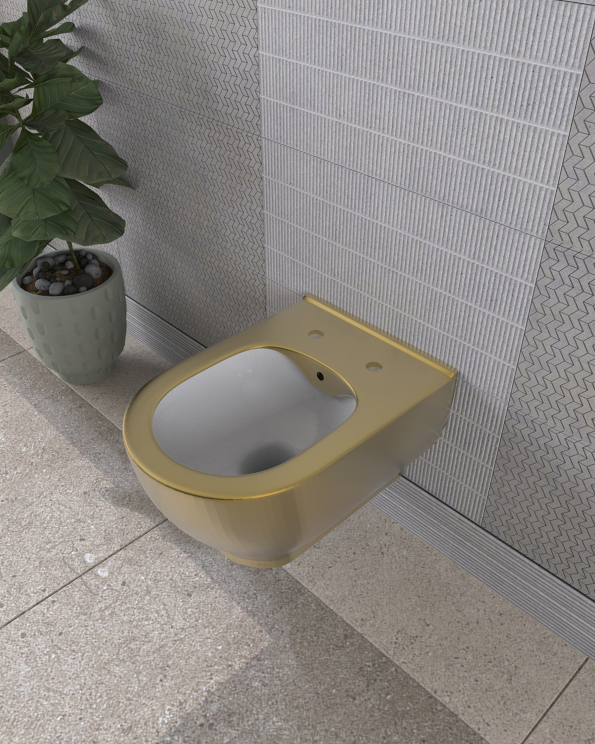 Lucco Garcia 53 cm Asma Klozet İçi Beyaz Dışı Komple Altın