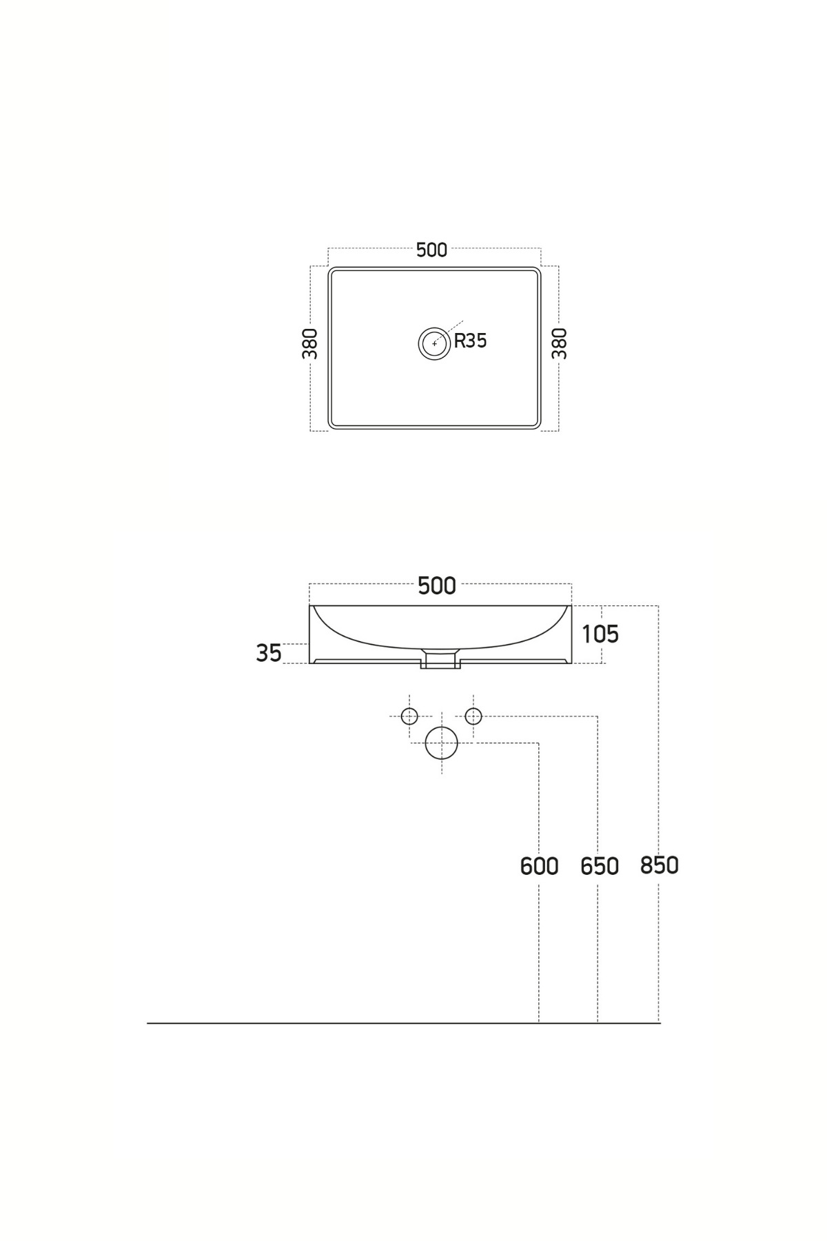 Lucco Square 50 cm Tezgah Üstü Dikdörtgen Lavabo Beyaz