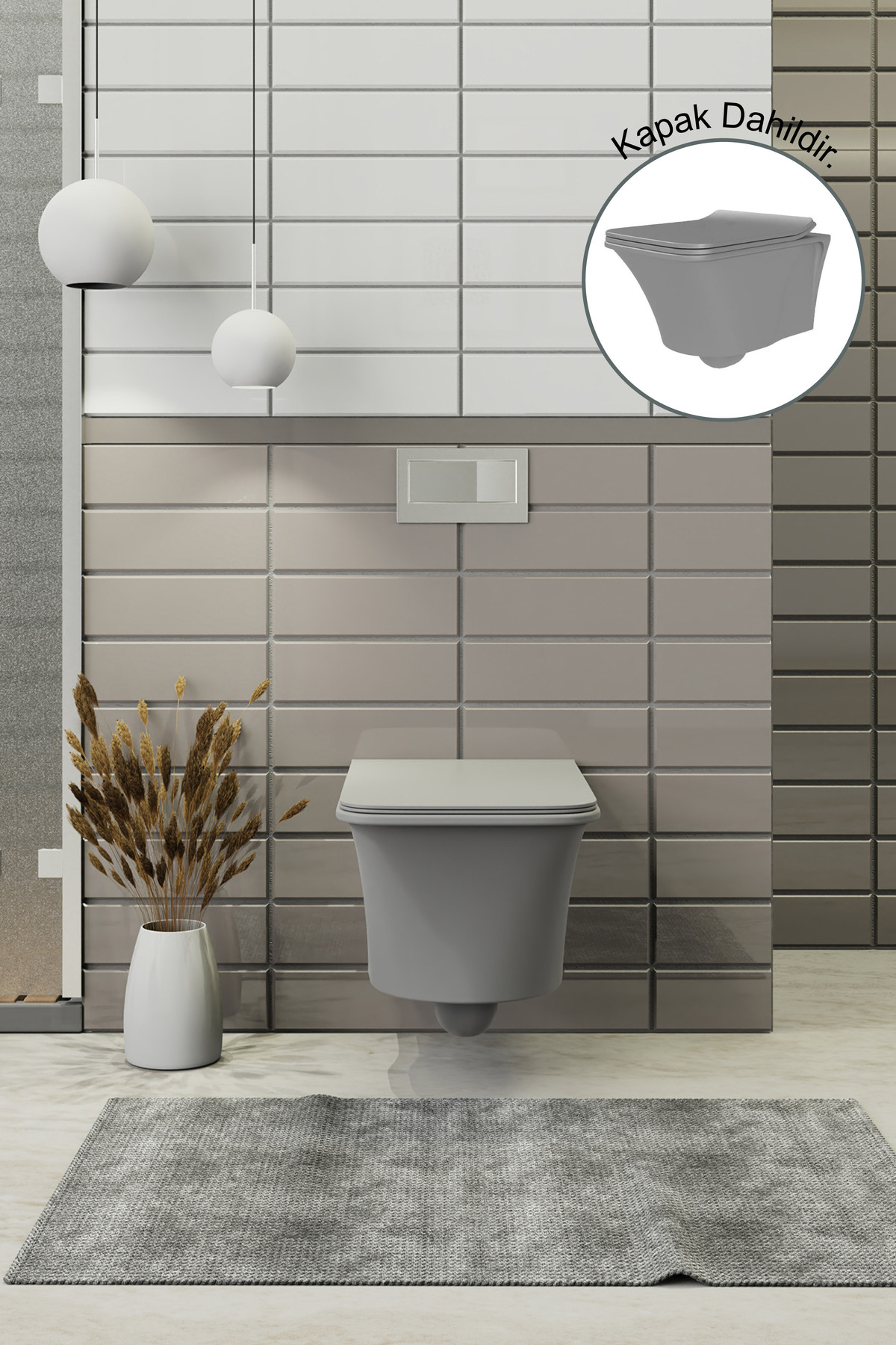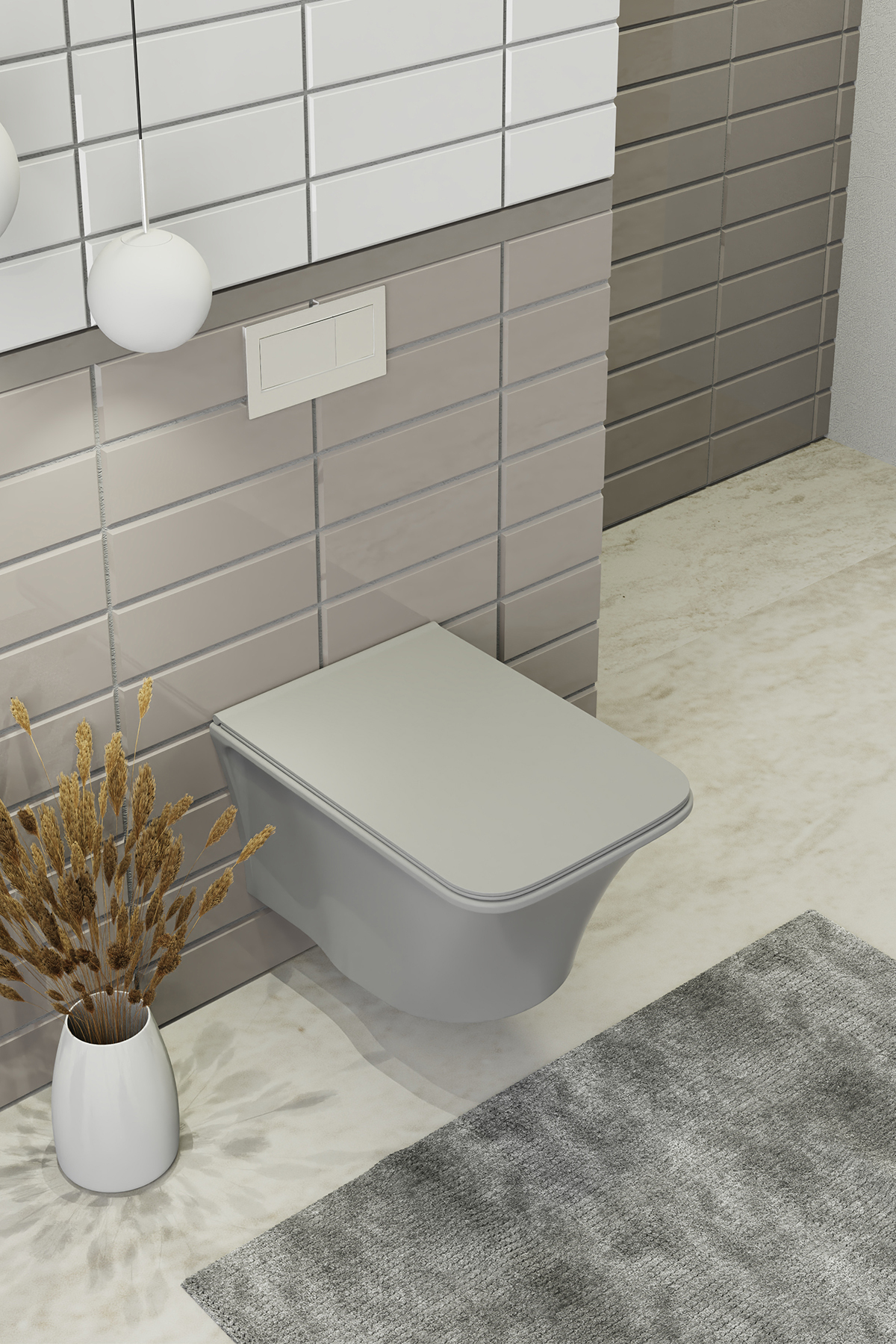 Turkuaz İbiza Asma Klozet + Klozet Kapağı Renk Mat Gri