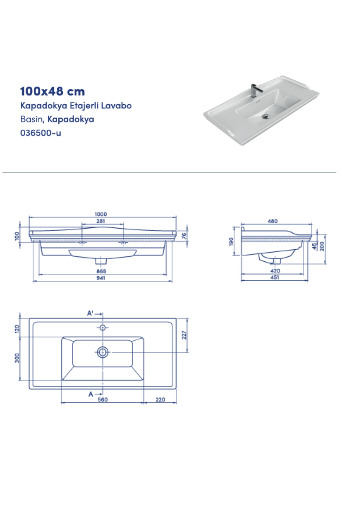 Turkuaz Kapadokya 100 Cm Etajerli Lavabo