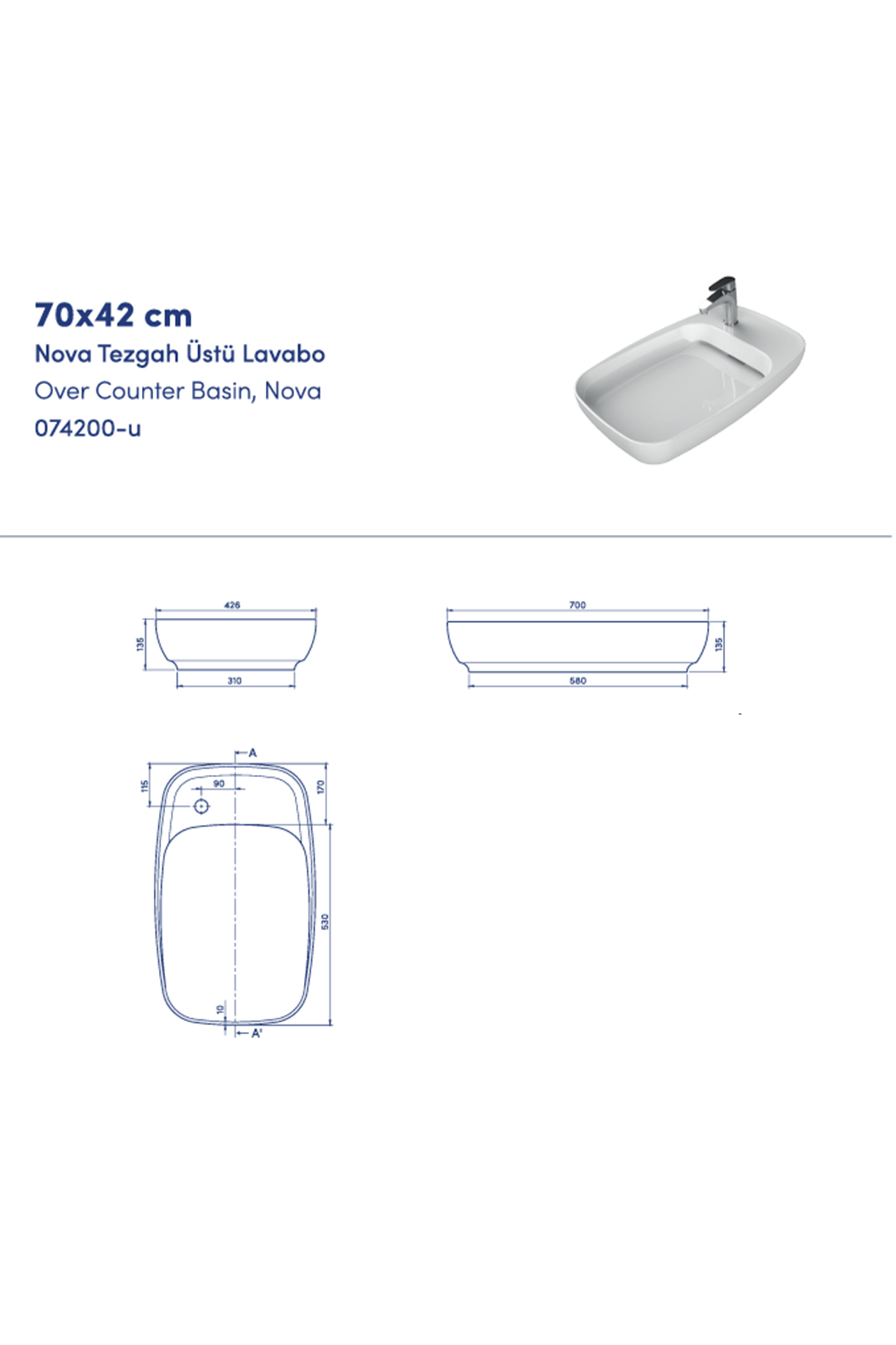 Turkuaz Nova 70 Cm Çanak Lavabo Gizli Sifonlu