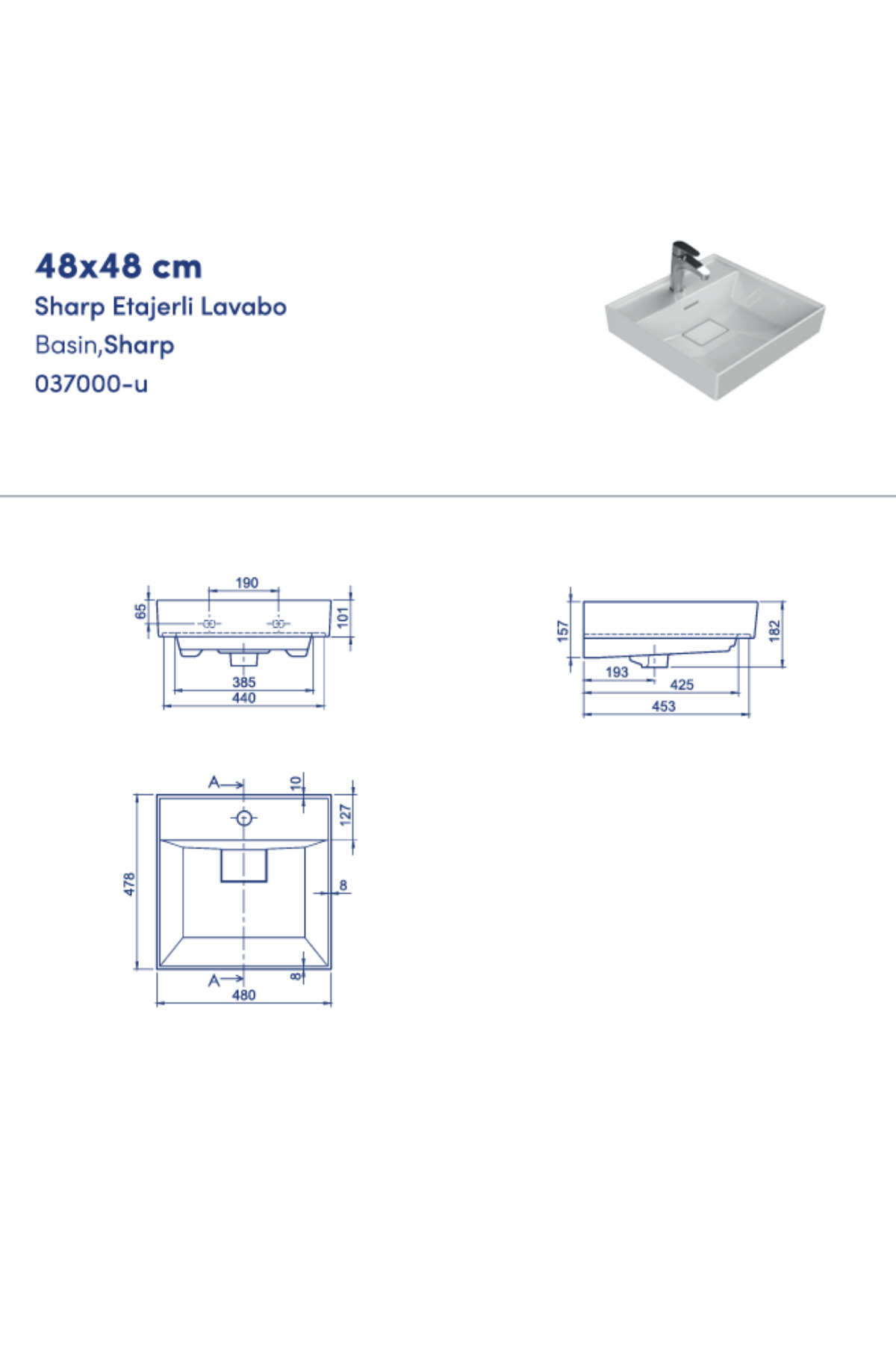 Turkuaz Sharp 48 Cm Lavabo Beyaz