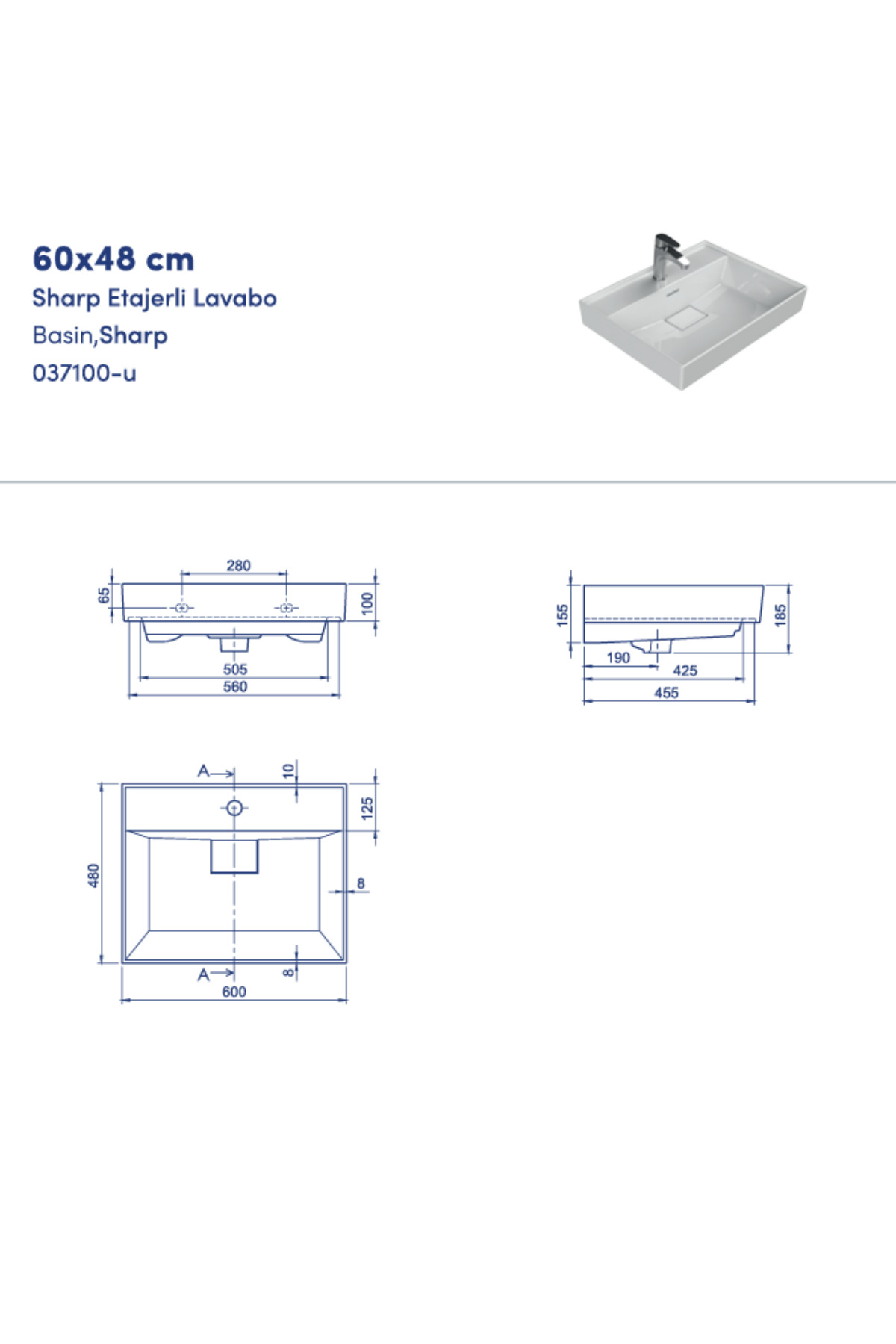Turkuaz Sharp 60 Cm Lavabo Beyaz